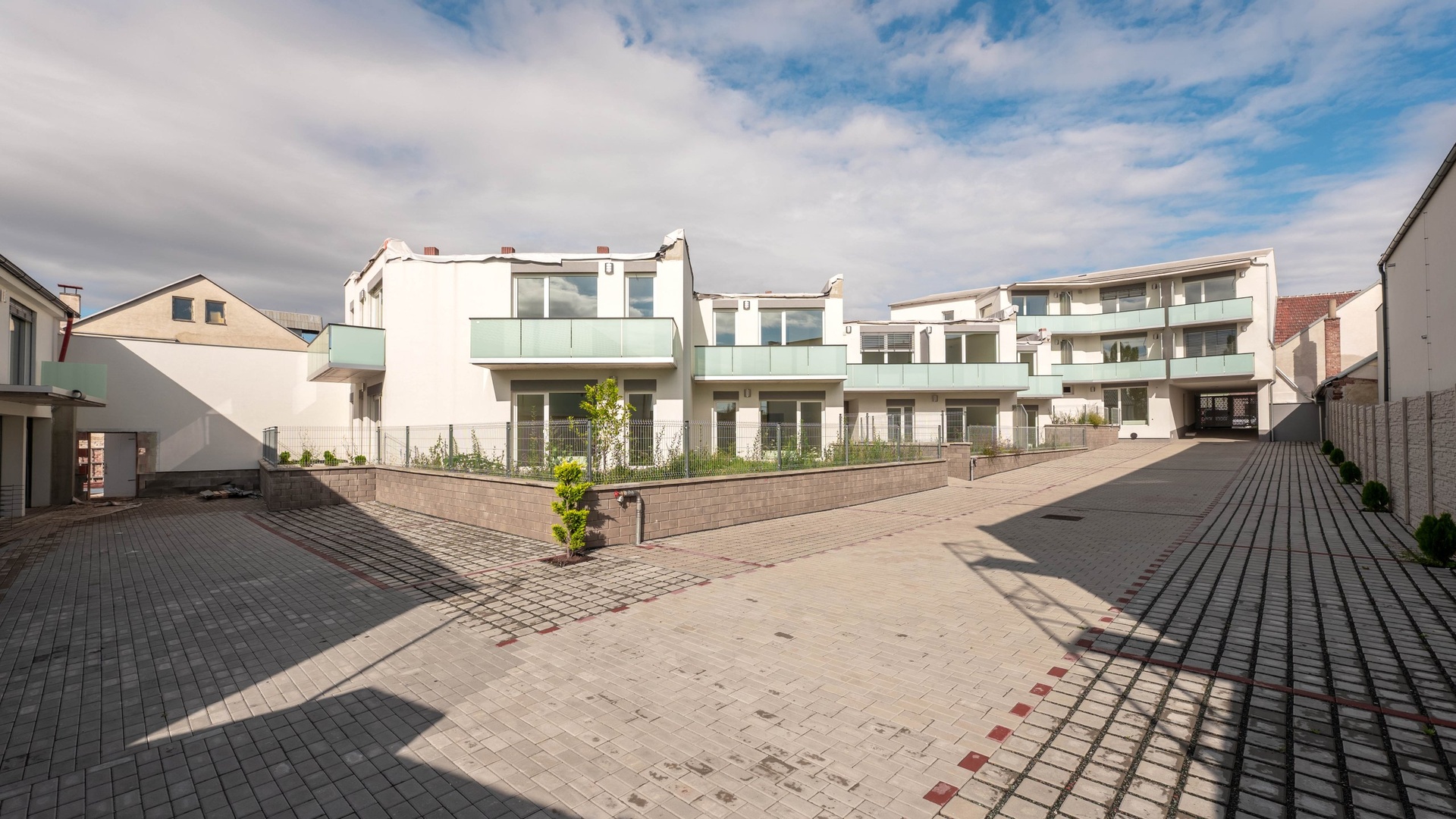 Díky uzavřenému areálu a promyšlené architektuře působí projekt komorně, přesto nabízí praktické dispozice a dostatek prostoru pro každodenní život.
