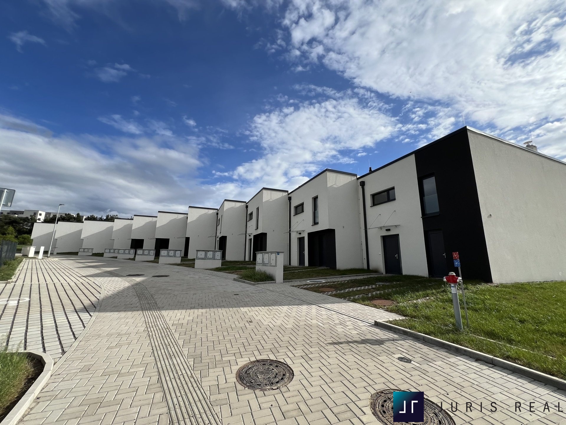 Řadové domy o dispozici 5+KK jsou navrženy tak, aby nabízely maximální komfort a prostor. V přízemí se nachází prostorný obývací pokoj s otevřenou kuchyní a jídelnou, který má přímý vstup na terasu a zahradu, ideální pro relaxaci a rodinné chvíle. Součástí přízemí je také vstupní hala, toaleta, technická místnost, chodba a sklad pro uskladnění sezónních věcí, který je přístupný z venkovního parkovacího stání.