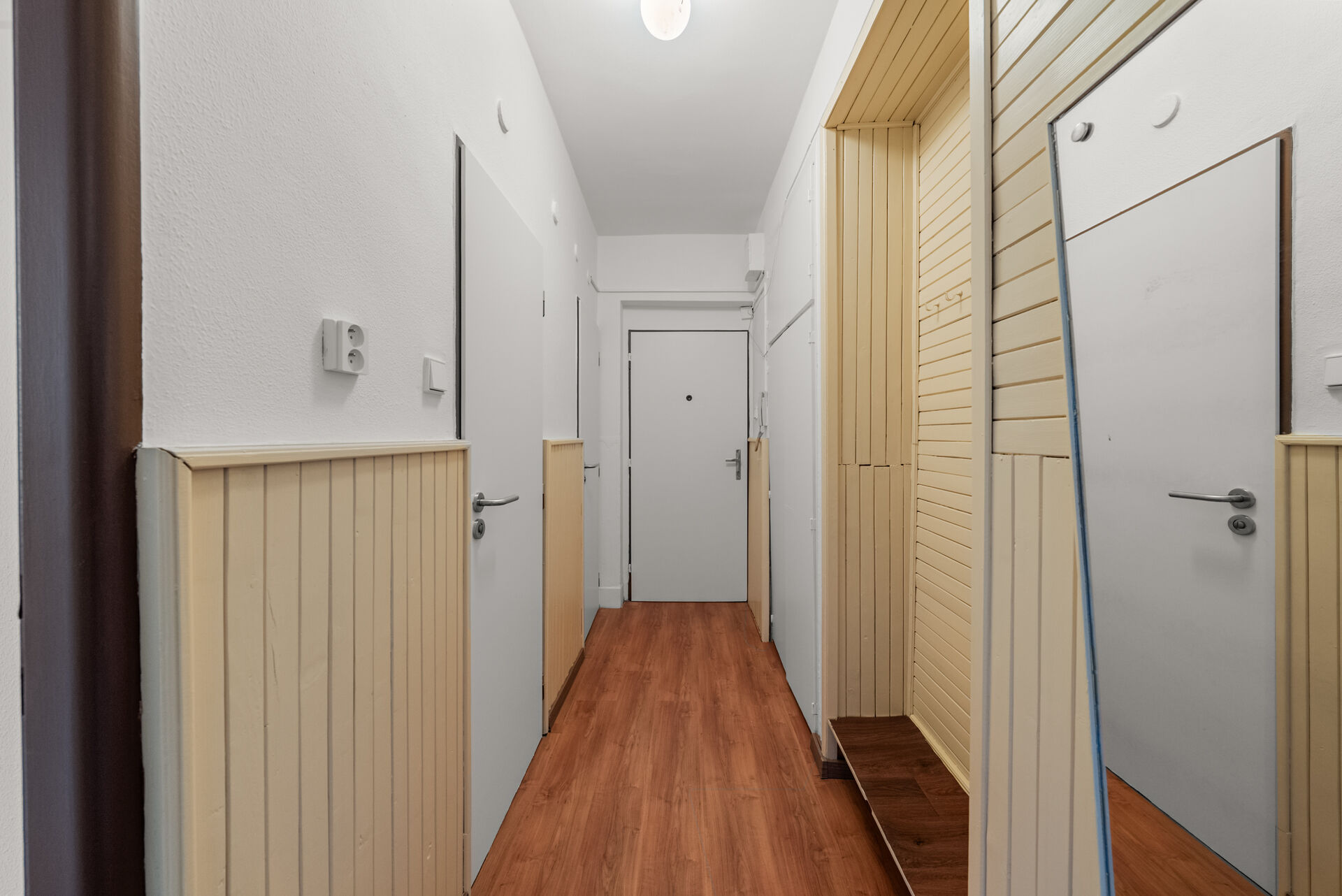 Z předsíně (3,68 m²) je vstup do koupelny, samostatného WC, kuchyně (9,72 m²) a obývacího pokoje (21,27 m²) s balkonem orientovaným na jihozápad s krásným výhledem do údolí. Z obývacího pokoje je dále přístup do ložnice (13,53 m²), orientované spolu s kuchyní na severovýchod.