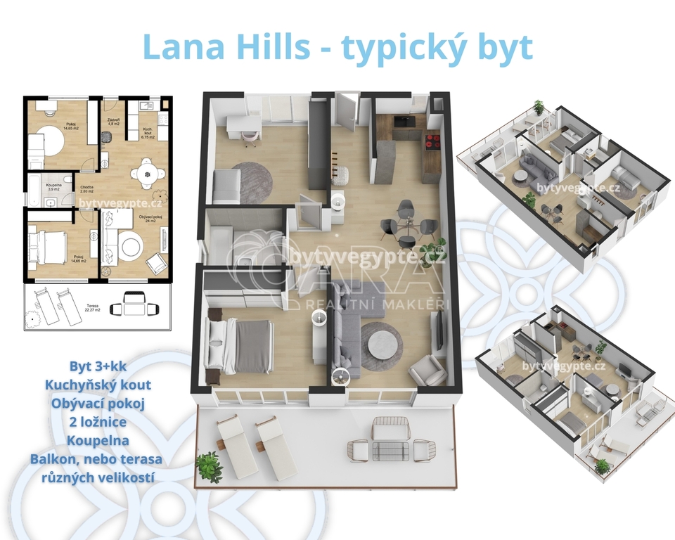 Lana Hills je moderní rezidenční projekt v resortním stylu, který spojuje výhodu pobřežní lokality, atraktivních výhledů a vysokého komfortu. Nachází se v jižní části prestižního letoviska Sahl Hasheesh, přibližně 5–10 minut chůze od moře a centra s restauracemi, kavárnami a obchody. Klidná oblast s rozvinutou infrastrukturou, kvalitními plážemi a nízkou zástavbou vytváří ideální prostředí pro rekreaci i celoroční bydlení. V okolí se nachází promenáda, golfové hřiště, přístaviště i zázemí pro volný čas a sport.