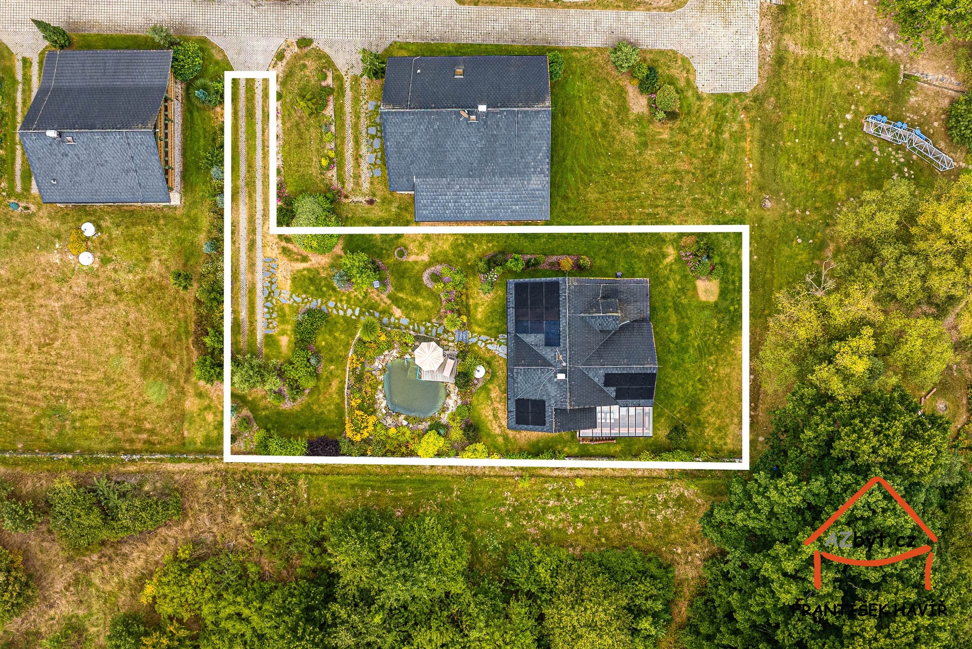 • Zahrada s jezírkem a robotickou sekačkou Husqvarna.