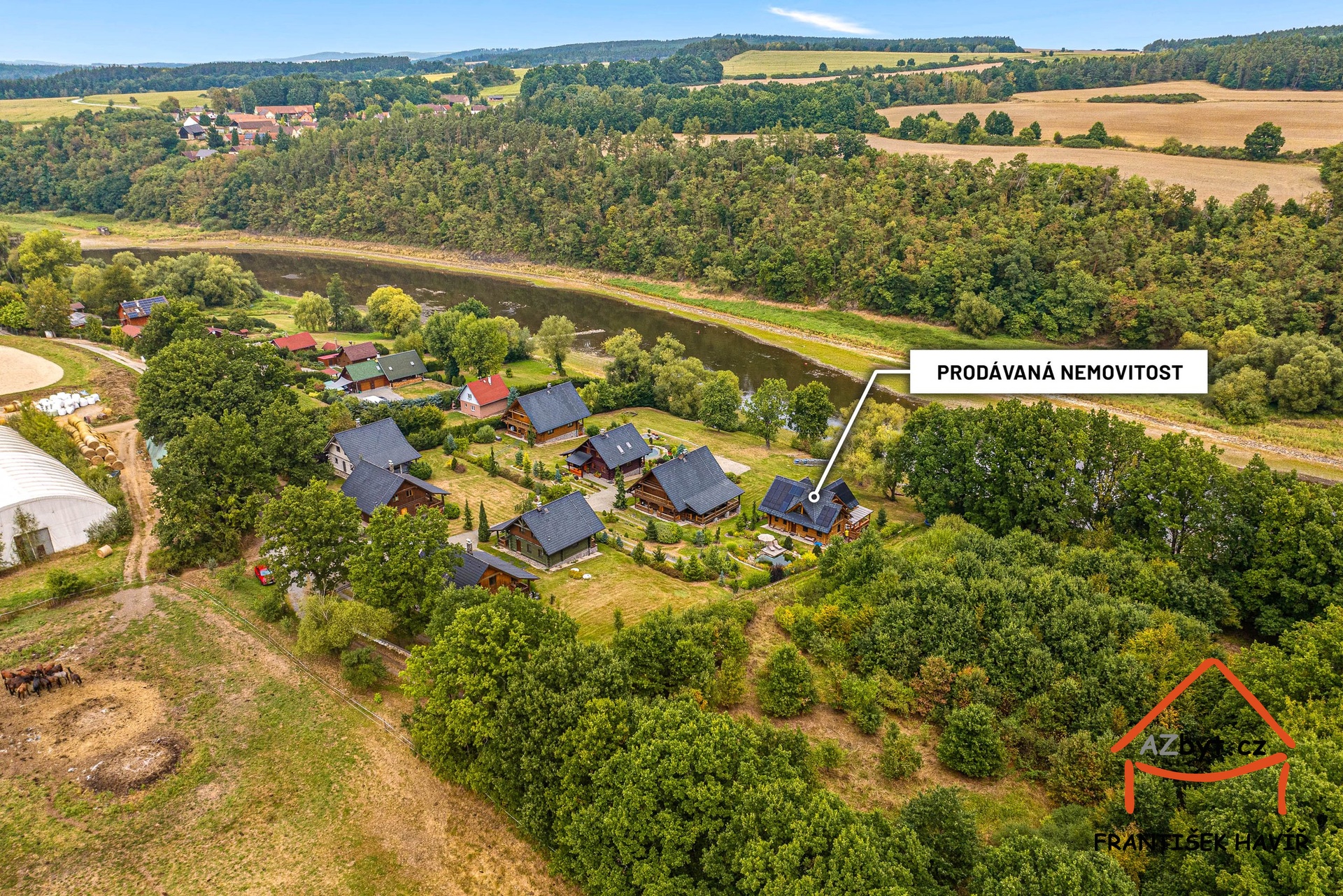 Nemovitost se nachází na klidném okraji obce Újezd, jen pár metrů od řeky Vltavy, s právem využívat soukromé molo pro vlastní loď.