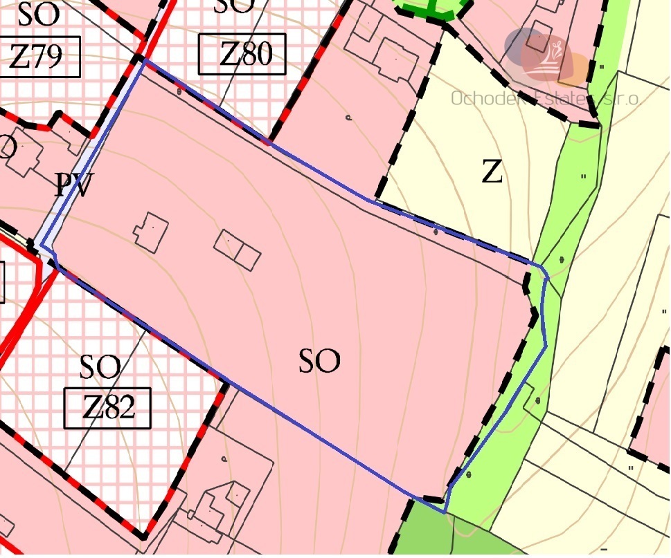 Soubor na sebe navazujících pozemků o celkové ploše 17842 m2, jehož součástí je rodinný dům a hospodářská budova. Většinová část pozemku spadá dle platného územního plánu do kategorie Plochy smíšené obytné, což umožňuje pozemek rozdělit na více menších častí pro stavbu rodinných domů.