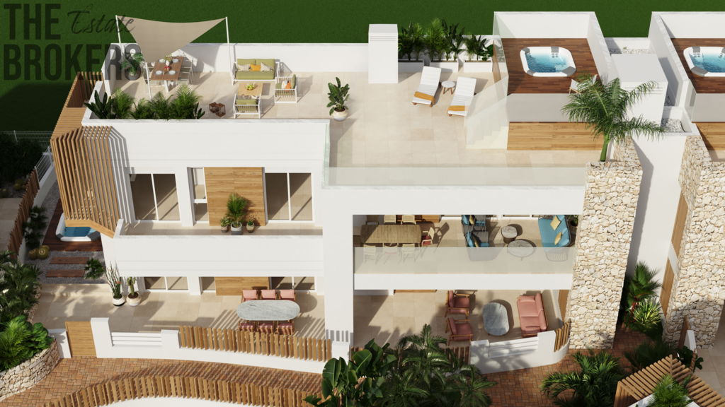 Všechny vily se pyšní velkými terasami, soláriem a garáží.