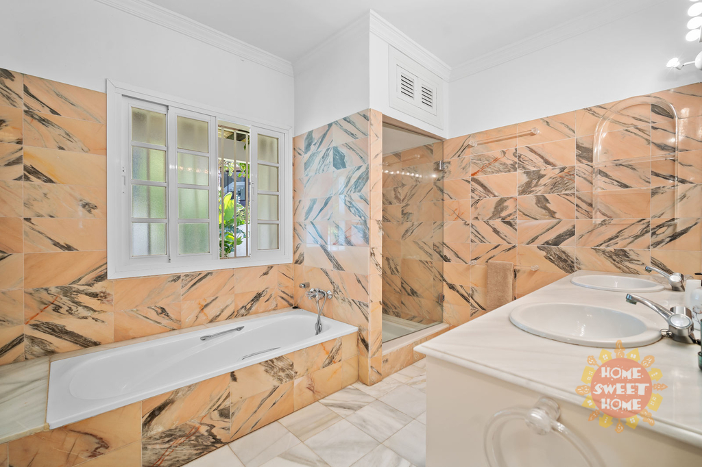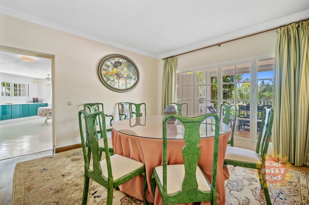 Vynikající investiční příležitost v lokalitě Guadalmina Baja, jen pět minut od pláže. Vila se nachází na velkém pozemku o rozloze 4100 m2 a nabízí možnost dům přestavět nebo rozdělit pozemek a postavit dvě nebo více nezávislých vil. V současné době je vila jednopodlažní a skládá se z velkého obývacího pokoje s krbem, jídelny, plně vybavené kuchyně, hlavního apartmá s obývacím prostorem a šatnou, pokoje pro hosty, dvou dalších ložnic pro hosty, dvou koupelen a samostatného bytu pro služebnictvo se třemi ložnicemi, dvěma koupelnami, kuchyní, obývacím prostorem a prádelnou.