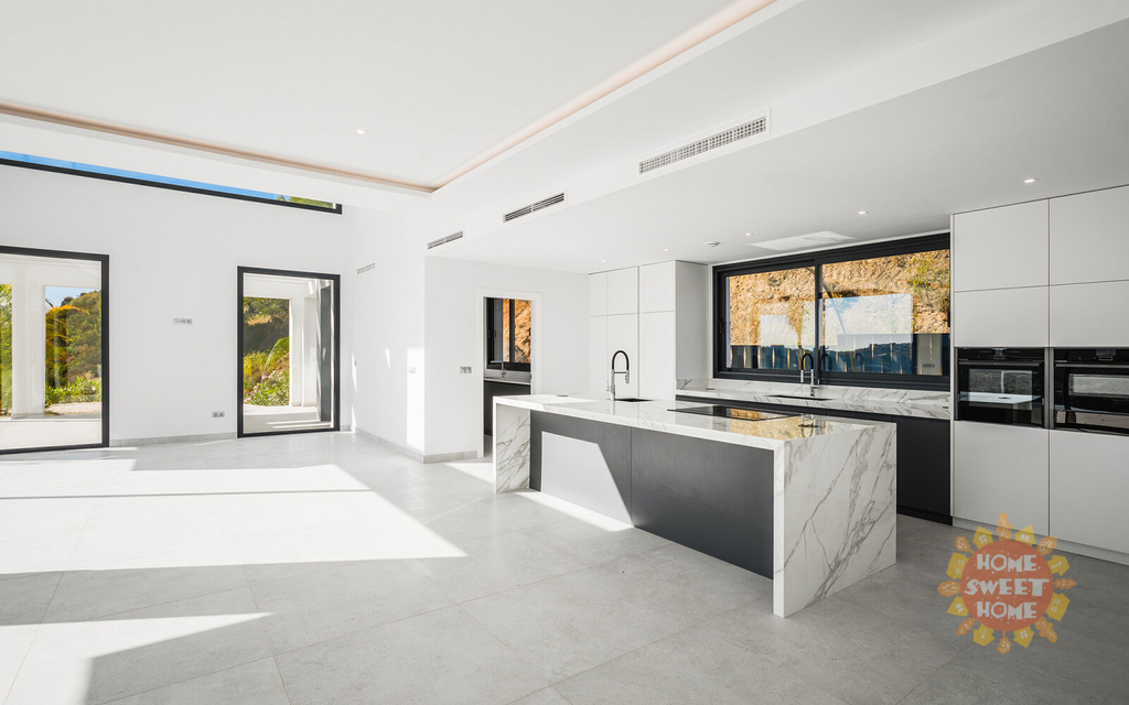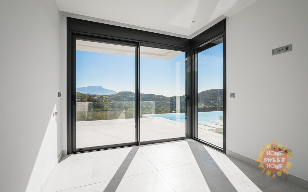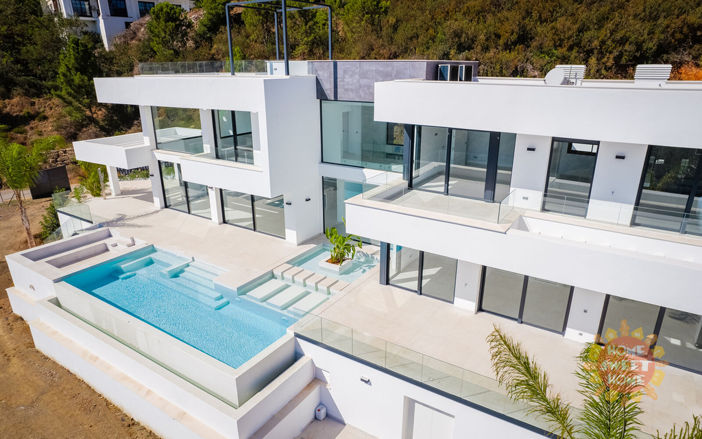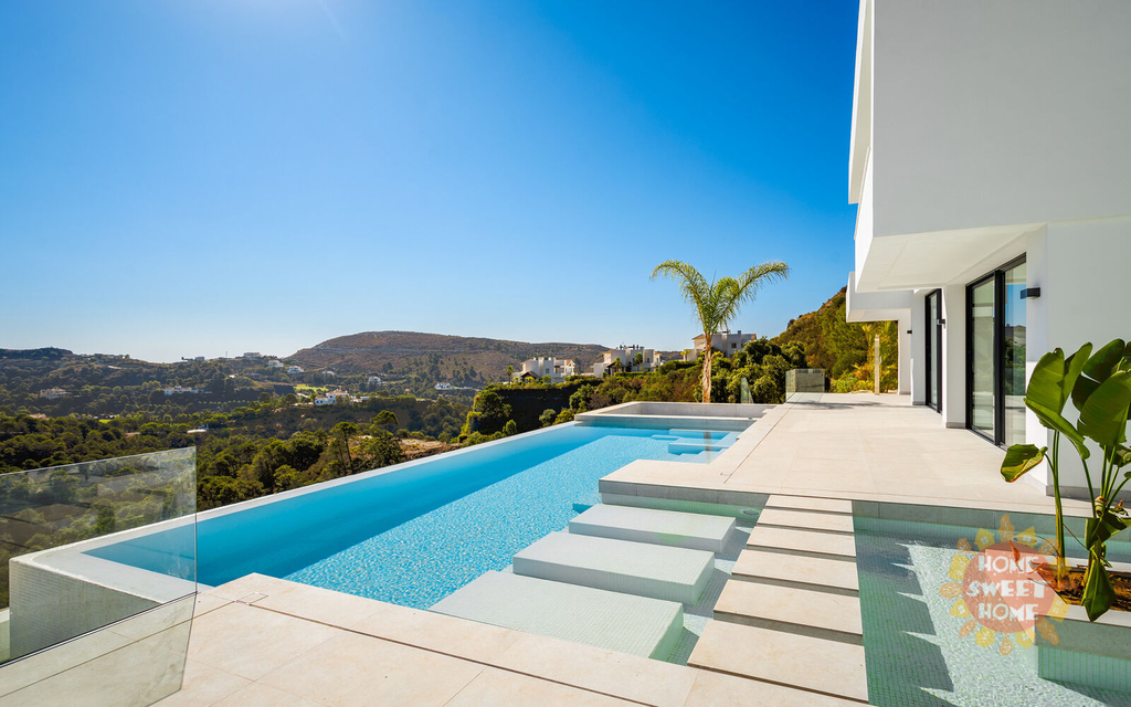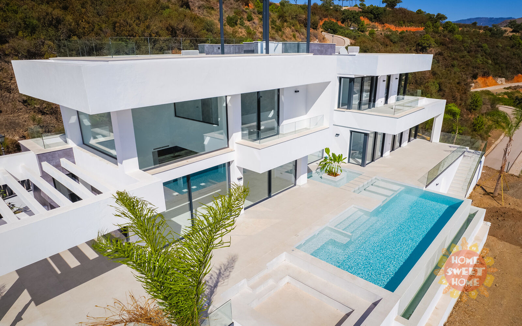 Představujeme vám tuto zbrusu novou moderní vilu v exkluzivní uzavřené komunitě Monte Mayor v Benahavisu v Malaze. Tato luxusní nemovitost nabízí prostornou obytnou plochu 786,47 m2 a může se pochlubit 5 ložnicemi, takže je ideální pro rodiny nebo ty, kteří hledají dostatek prostoru. Tato vila se nachází na velkém soukromém rohovém pozemku o rozloze přibližně 2895 m2 a nabízí otevřený výhled a pocit soukromí.