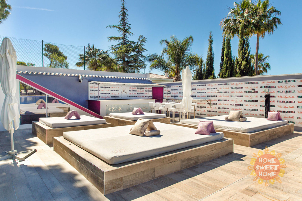 Nádherná vila s osmi ložnicemi, orientovaná na východ, postavená na pozemku o rozloze 3000 m2 s nádherným panoramatickým výhledem na Středozemní moře. Vila nabízí skvělé vybavení a zázemí, včetně nově instalovaného bazénu, desetimístné vířivky, baru u bazénu, venkovního jídelního koutu a nejmodernějšího venkovního osvětlení. Tropická zahrada je propojená s prostornou terasou s luxusními s lehátky v balijském stylu a nabízí skvělé zázemí pro relaxaci.