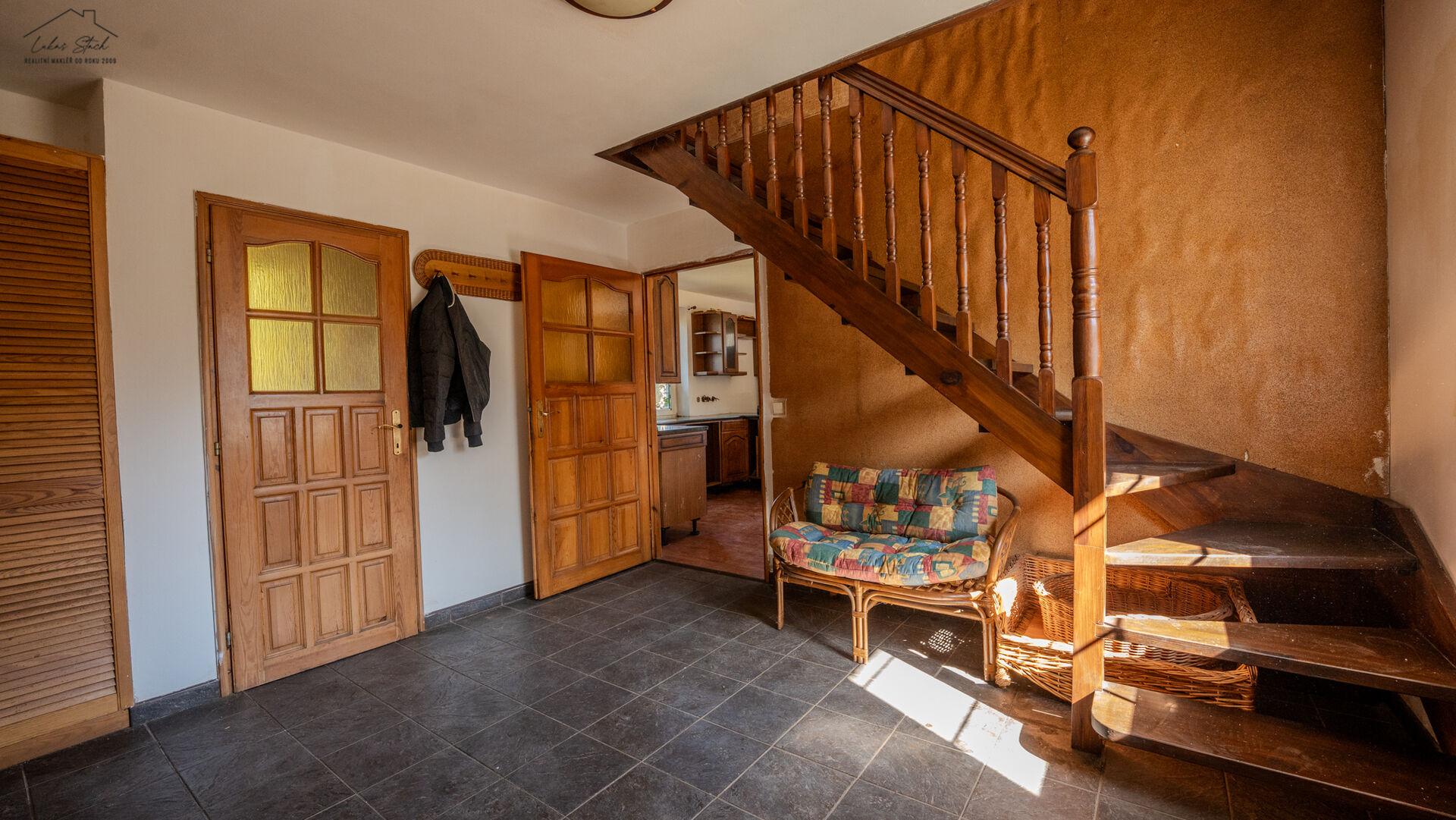 Příjemným detailem je, že schodiště vede z chodby, nikoliv z obytného prostoru, což přináší větší komfort a soukromí při běžném fungování.