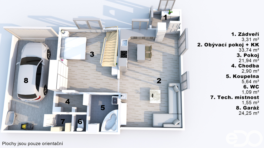 Jedním z hlavních benefitů nemovitosti je půdní prostor, který nabízí možnost vybudování 1 až 2 dalších pokojů. Díky tomu může dům přirozeně reagovat na změny vašich potřeb – ať už přibude rodina, pracovna nebo pokoj pro hosty.