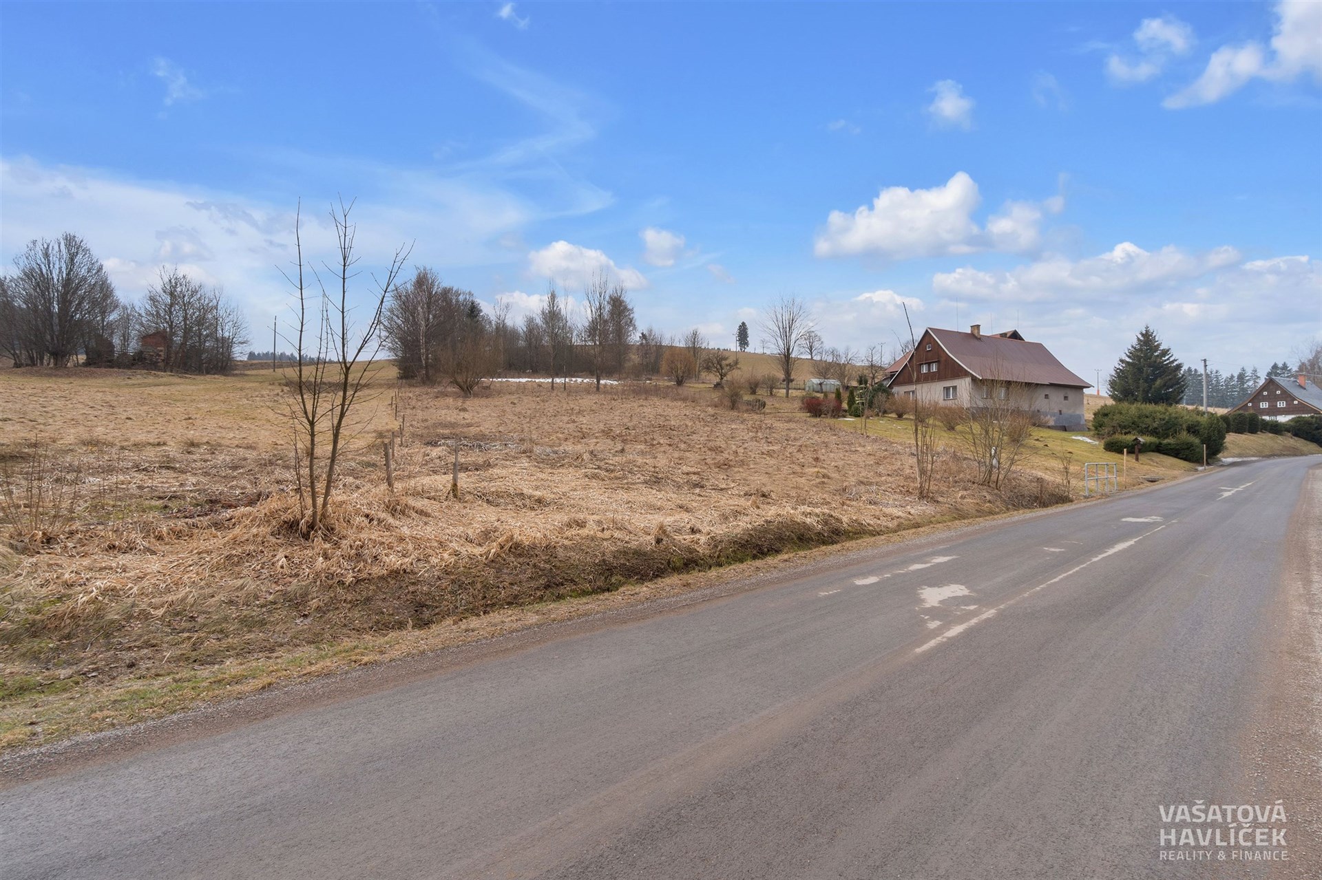 Část pozemku, kde je umožněno stavět, je pozemek mírně svažitý. V jižní třetině pozemku, kde je nutné zanechat zeleň, je pozemek již více svažitý a porostlý listnatými stromy a nálety. Pozemek je obdélníkového tvaru přístupný z obecní komunikace.