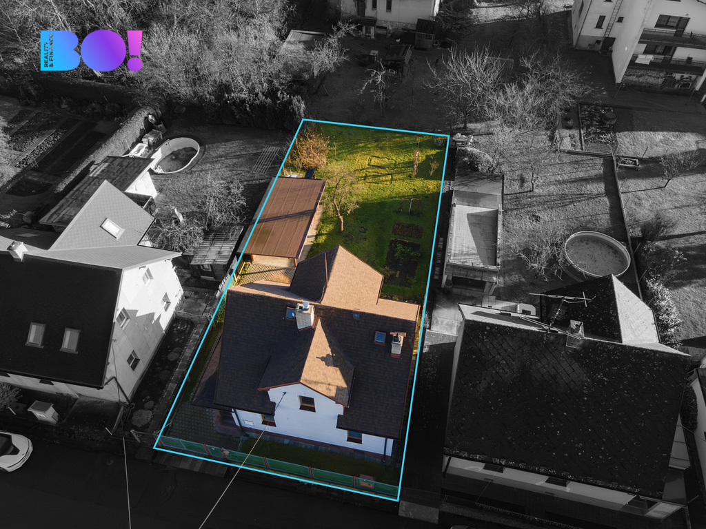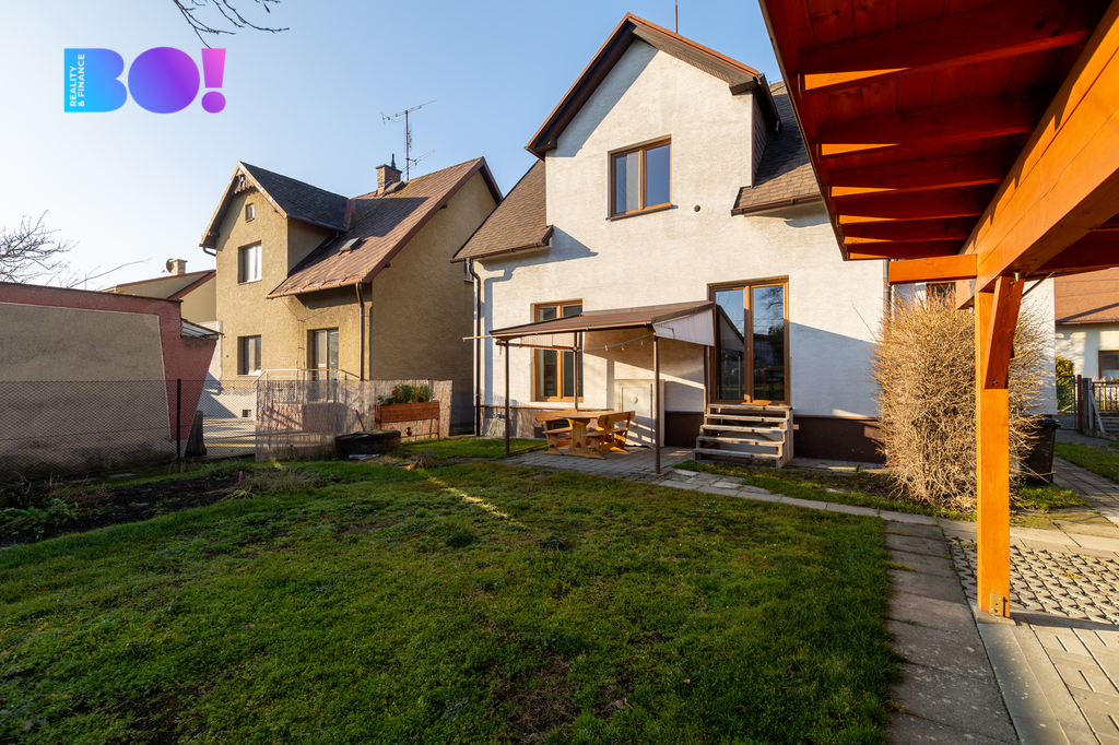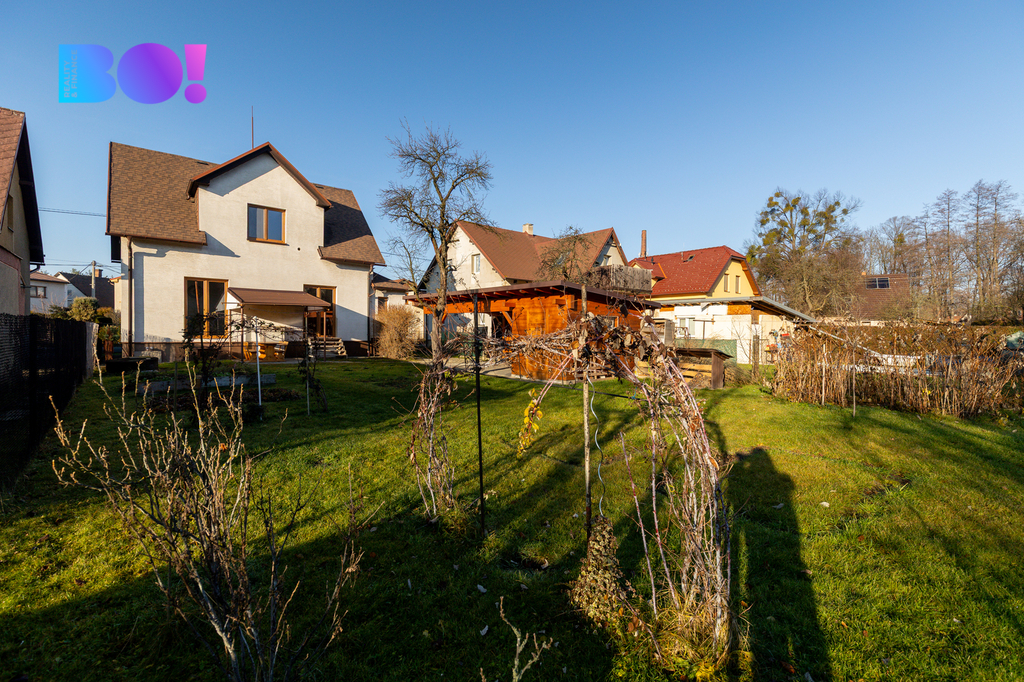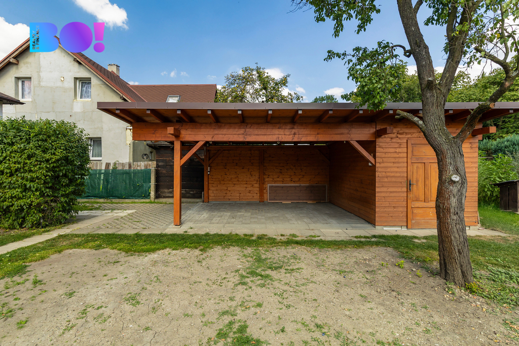 A co venku? Čeká na vás rovinatá zahrada s ovocnými stromy a keři, přístřešek pro auto, včetně úložných prostor, případně malé dílny. Ideální místo pro letní posezení, rodinné oslavy nebo třeba pěstování vlastní zeleniny.