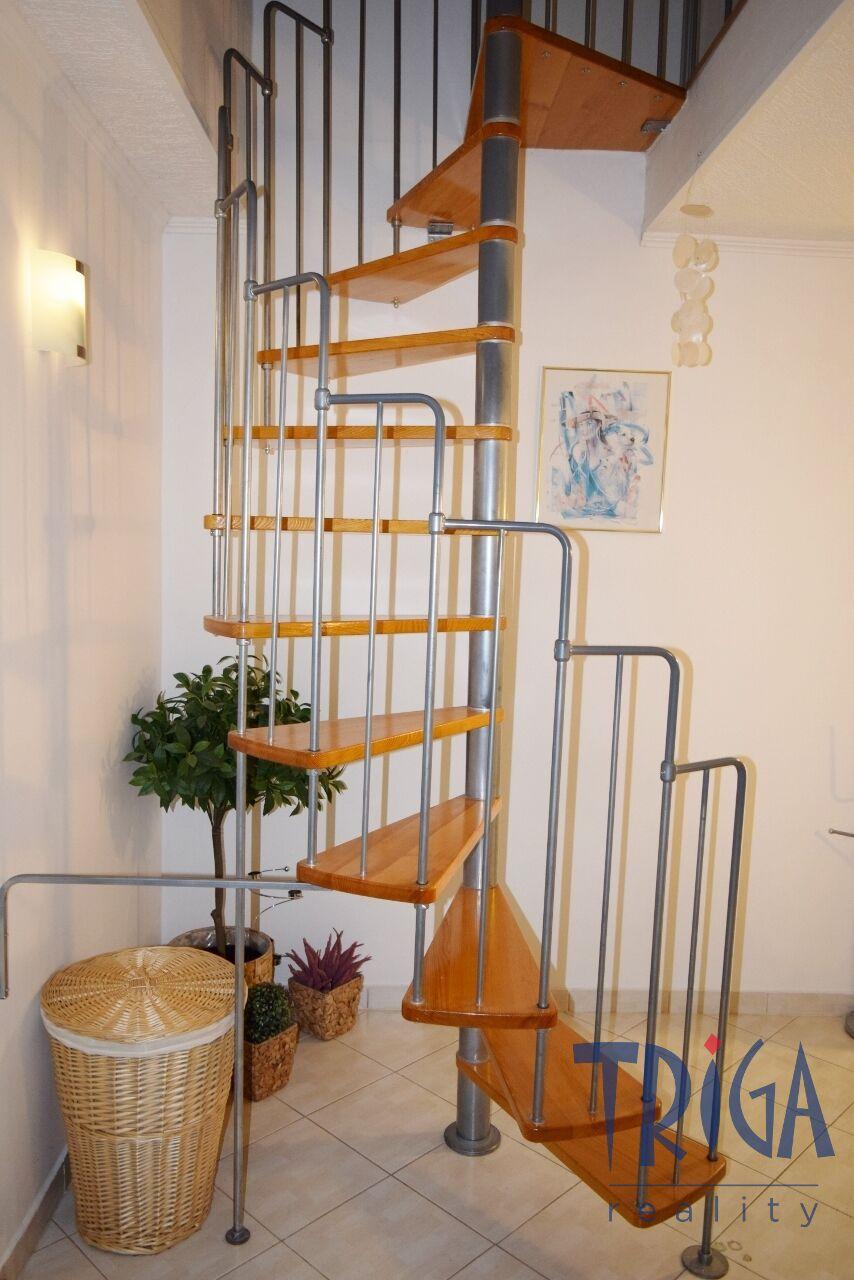 V přízemí se nachází dva samostatné vchody, vstupní předsíň, kuchyň s moderní kuchyňskou linkou a spotřebiči, obývací pokoj a prostorná koupelna s rohovou vanou, dvěma umyvadly, WC a bidetem. Z předsíně vede točité schodiště do patra.