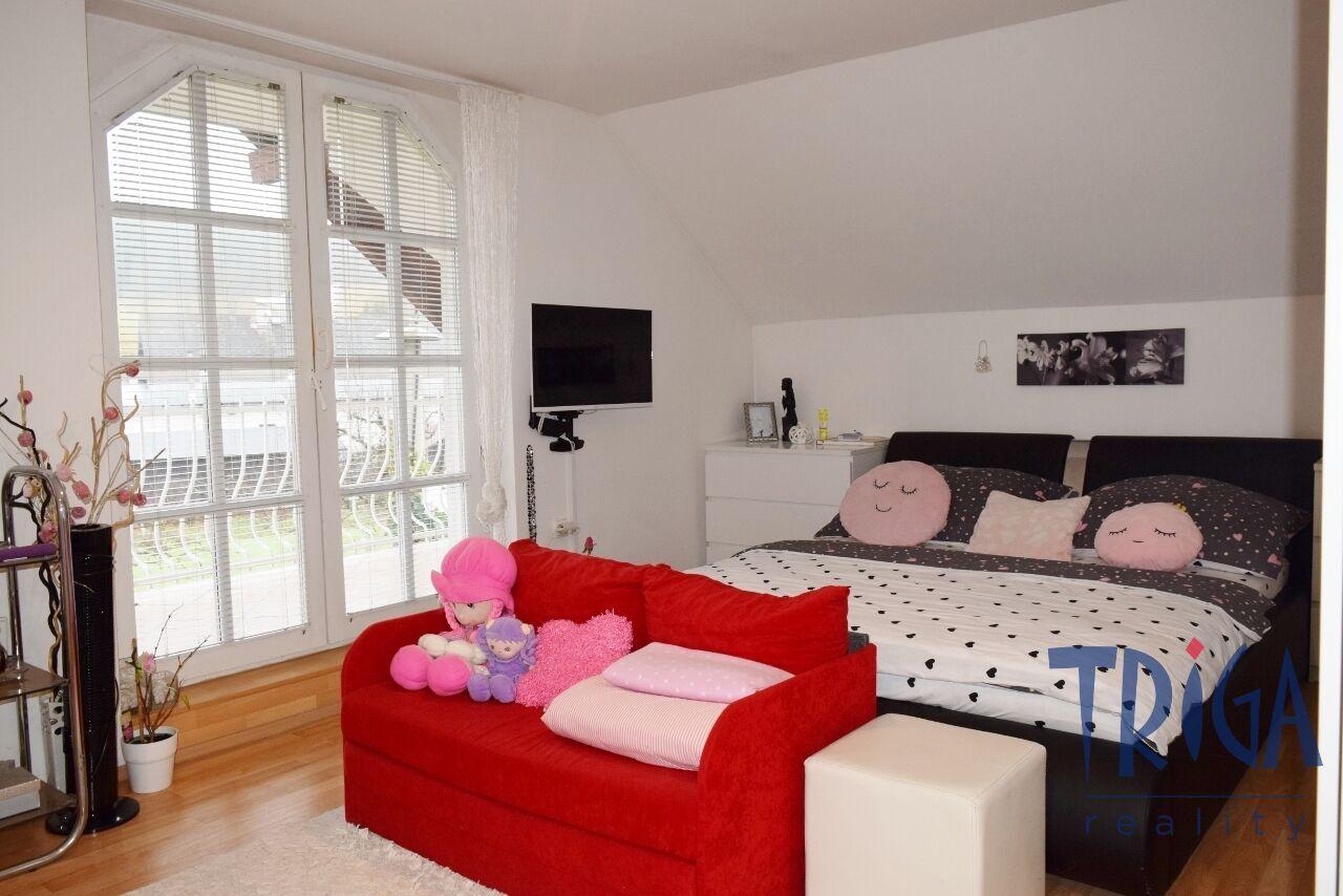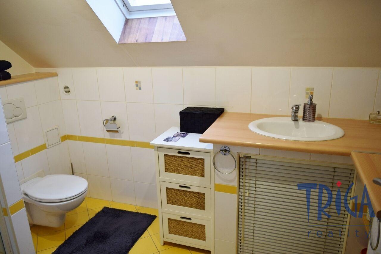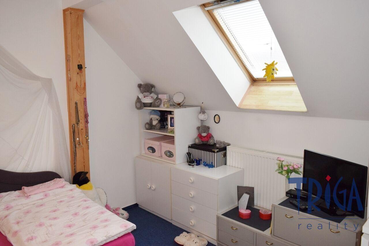 V podkroví jsou situovány dva pokoje, prostorná ložnice s lodžií a koupelna s WC a sprchovým koutem.