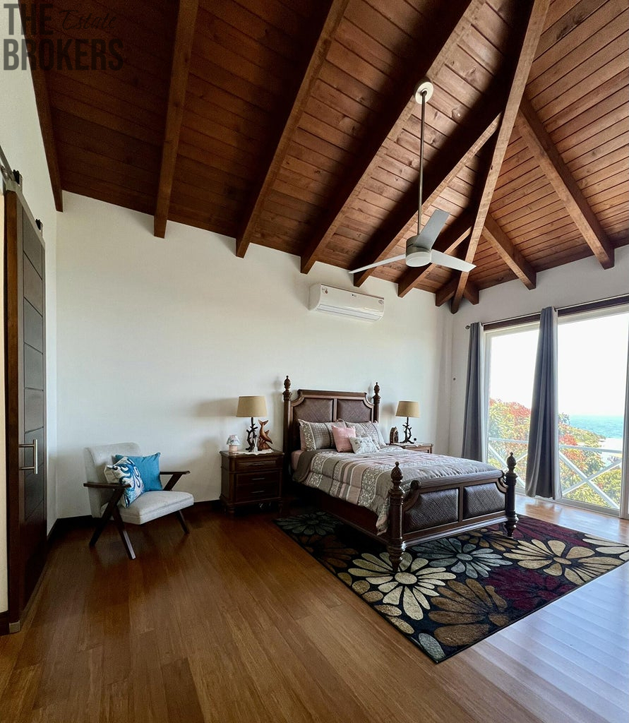 Luxusní hlavní ložnice je vybavena postelí s nebesy, vlastní koupelnou a velkými okny s úžasným výhledem, navržená pro relaxaci se stylovým nábytkem a dostatkem úložného prostoru. Další pokoje pro hosty jsou promyšleně navrženy s útulným dekorem a poskytují pohodlí a soukromí pro rodinu a hosty, umocněné vysokými stropy a dostatkem přirozeného světla.