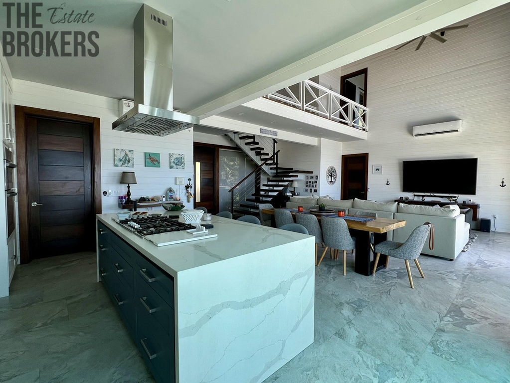 Tento nádherný dům zasazený do malebné krajiny s úchvatným výhledem na oceán spojuje luxus, pohodlí a moderní design. Tato nemovitost je ideální pro relaxaci i zábavu a nabízí bezproblémové bydlení uvnitř i venku, což z ní dělá perfektní útočiště pro rodiny nebo kohokoli, kdo si chce užít klid života na pobřeží. Tato rezidence se třemi prostornými ložnicemi a 3,5 koupelnami snadno ubytuje rodiny i hosty. Rozlehlá terasa je jako stvořená pro zábavu, nabízí stylový venkovní jídelní kout zastíněný elegantními pergolami a doplněný šumivým bazénem, který je ideální pro opalování nebo osvěžující koupání. Exteriér domu se může pochlubit moderní estetikou s elegantními liniemi, velkými okny a prostornou terasou ta umocňuje úžasný výhled na okolní krajinu a oceán, to vše obklopené bujnou zelení, která poskytuje soukromí a klidnou atmosféru. Tato nemovitost se nachází v exkluzivní malé komunitě s přístupem do doku a nabízí jedinečnou kombinaci ústraní a pohodlí.