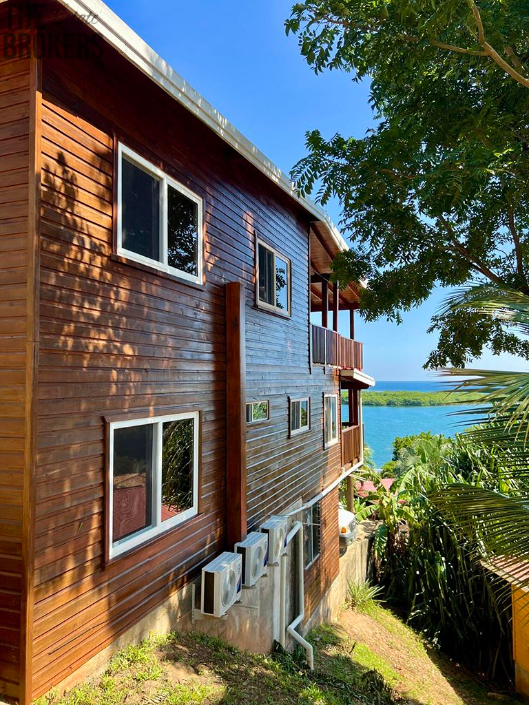 Objevte svůj vysněný domov v úžasné komunitě Czech Village na Roatanu! Tato okouzlující dřevěná dvoupatrová rezidence nabízí jedinečnou kombinaci pohodlí a úchvatného výhledu na Karibské moře. V horním patře je prostorný hlavní obývací prostor se dvěma ložnicemi a dobře vybavenou koupelnou. Z této oblasti se rozprostírá rozlehlá veranda, která poskytuje dokonalé místo pro relaxaci nebo zábavu při panoramatickém výhledu na šumivé Karibské moře. Ve spodním patře najdete útulný apartmán s jednou ložnicí a jednou koupelnou, ideální pro hosty nebo jako příležitost k pronájmu. Kromě toho je zde okouzlující studio s vlastní koupelnou, z nichž obě sdílejí příjemnou verandu, která obě jednotky spojuje. Tato nemovitost zahrnuje také pohodlné parkování a dvoukomorová nádrž na vodu zajišťující spolehlivý přívod vody. Navíc budete mít snadný přístup do komunitního doku, který vám umožní plně si užít krásné vody ostrova.