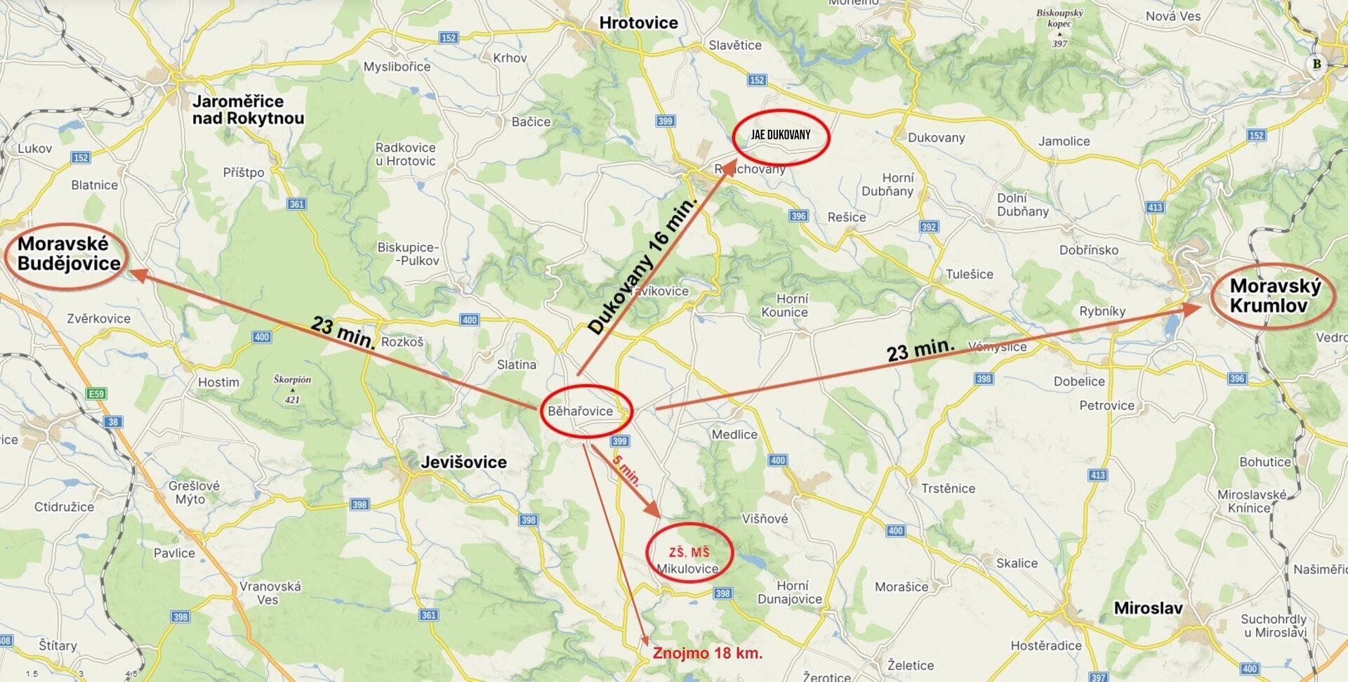 Ať máte malé děti, co běhají jako šílení, nebo jste starší pár s dospělými potomky (konečně bez "mami, kde jsou ponožky?"), v tichých Běhařovicích (18 km od Znojma) postavíme dva přízemní 4+kk 121 m2. Dokončení? Do 14 měsíců od podpisu smlouvy, rychleji než se dostaví další blok Dukovan. Do AE Dukovany 16 minut, Znojmo 20 minut, dojíždění bez kolon jako procházka, doma klid jako na samotě u lesa. Super, pokud máte kamaráda nebo rodinu, která chce bydlet vedle vás!