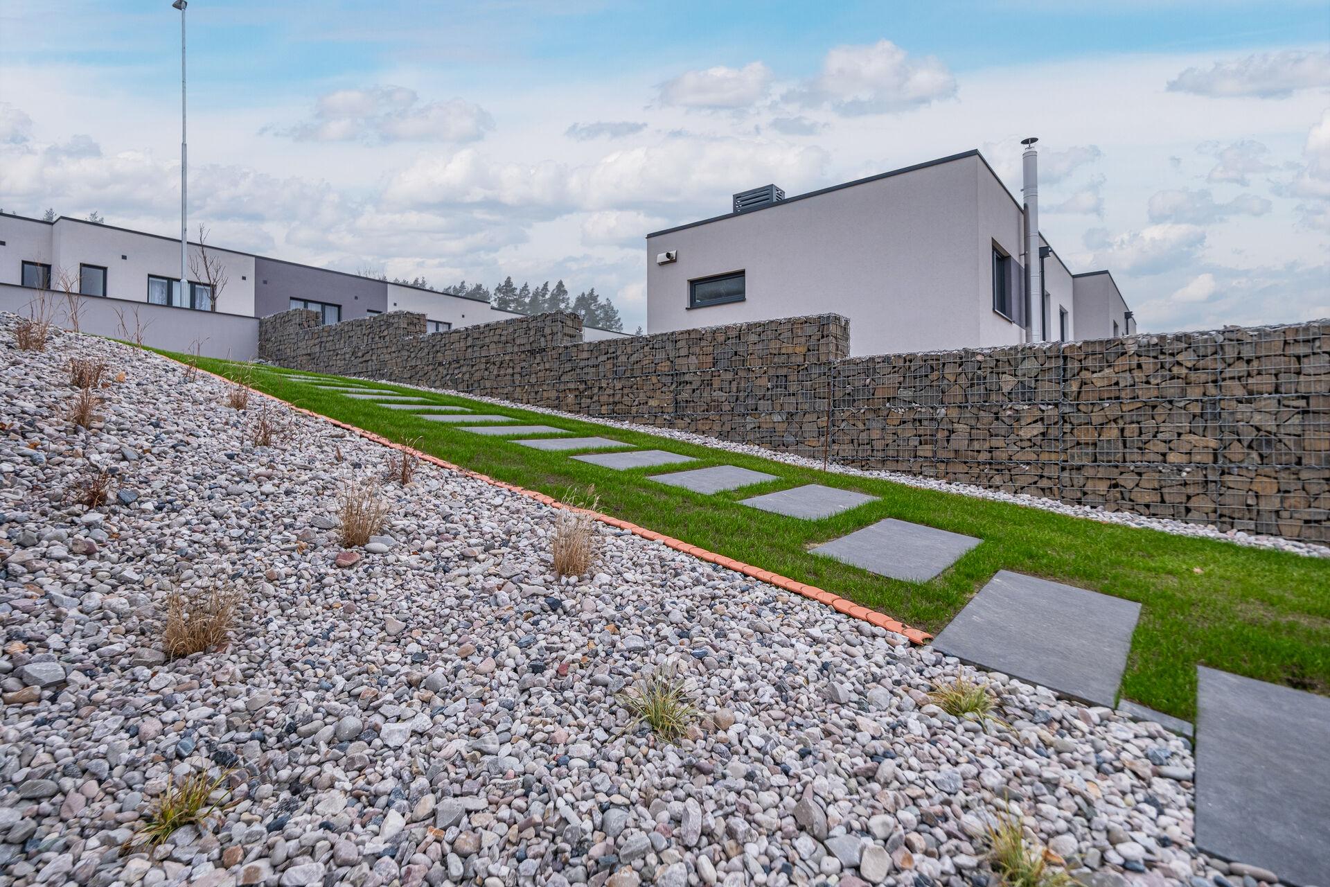 Součástí zahrady je zahradní domek (11 m2) s podzemní nádrží na dešťovou vodu (závlaha 12m3), vše v jednotném designu – žádná náhoda, ale promyšlený celek do posledního detailu.