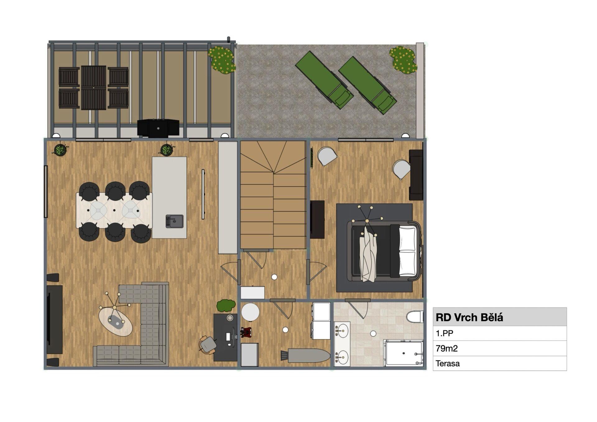 Prodej novostavby velikosti 5kk s terasou, projekt Bydlení Vrchbělá