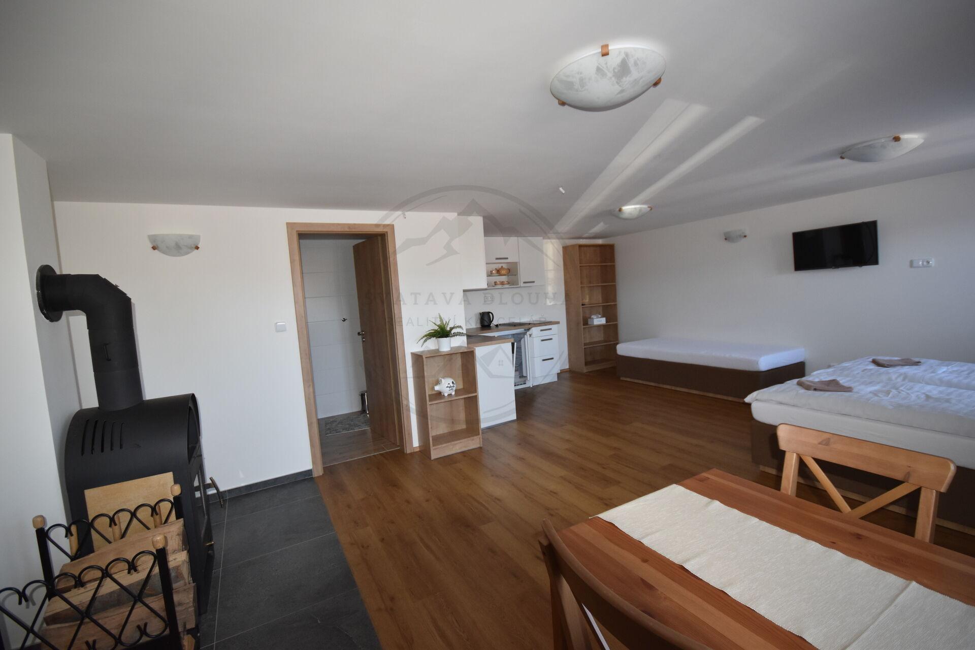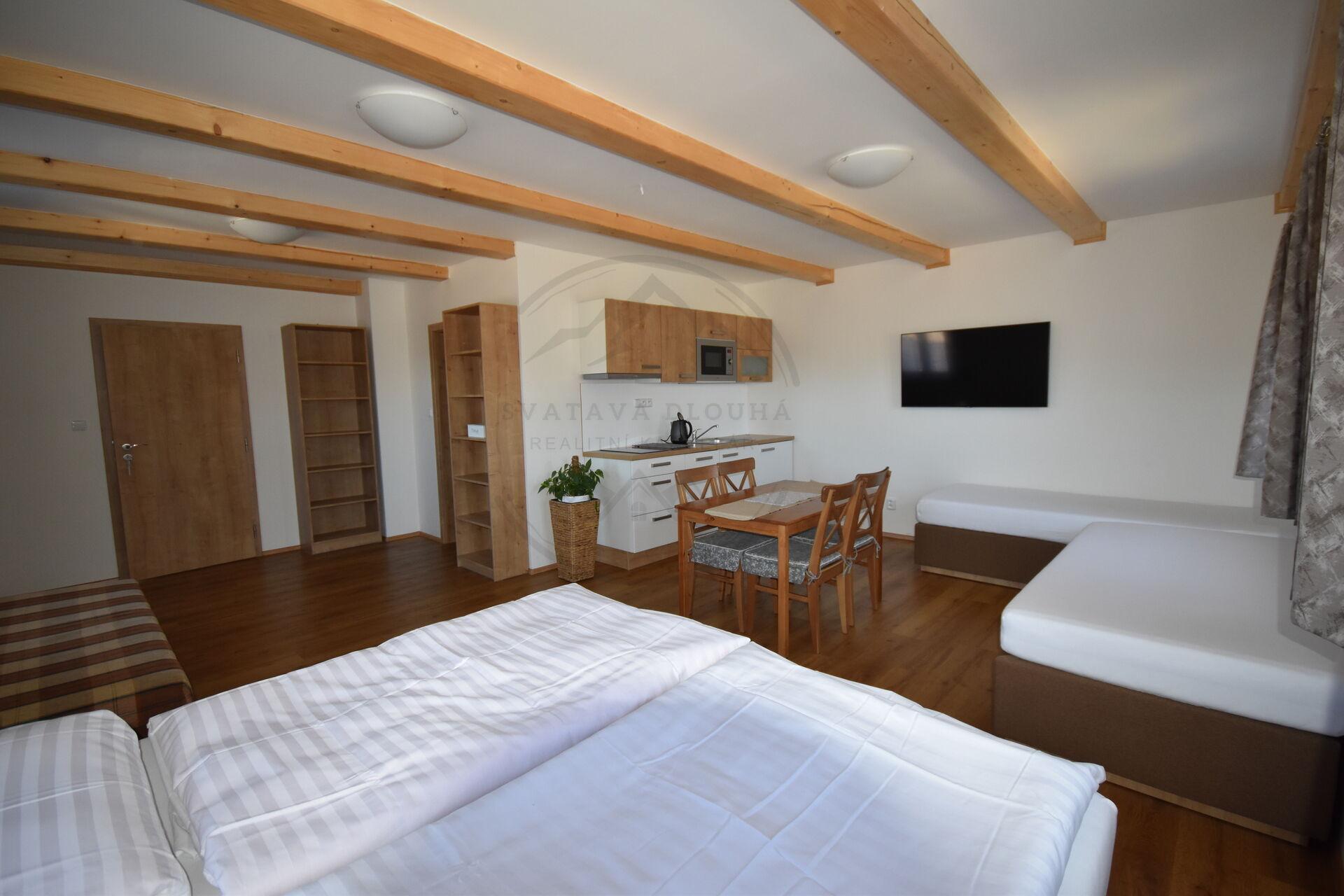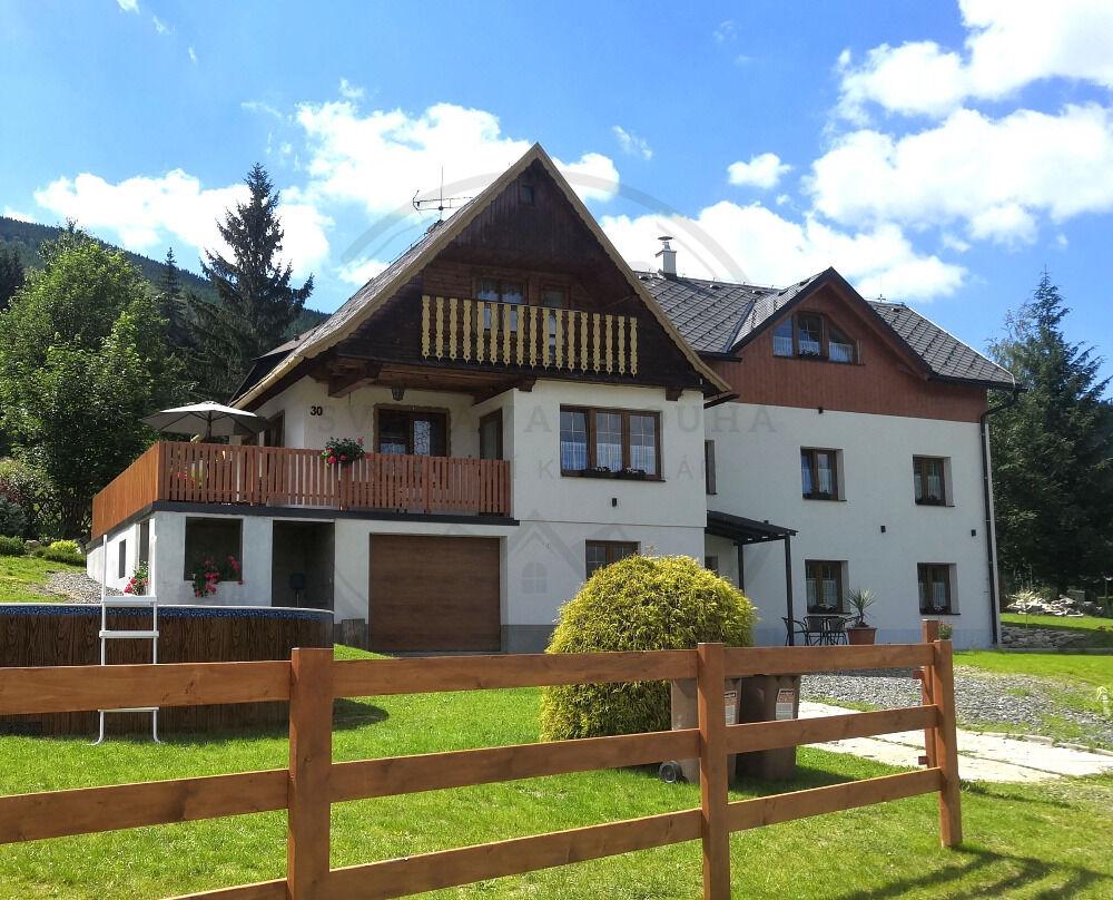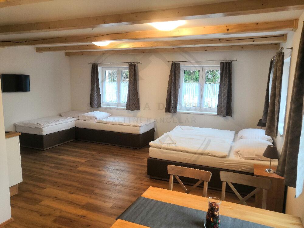 Dům má ubytovací kapacitu až 20 lůžek a je ideální pro provozování zavedeného penzionu nebo kombinaci vlastního rekreačního bydlení a krátkodobých pronájmů. Původní část objektu byla postavena v roce 1980 a v roce 2019 prošla částečnou rekonstrukcí, současně byla realizována moderní přístavba se třemi plně vybavenými apartmány.