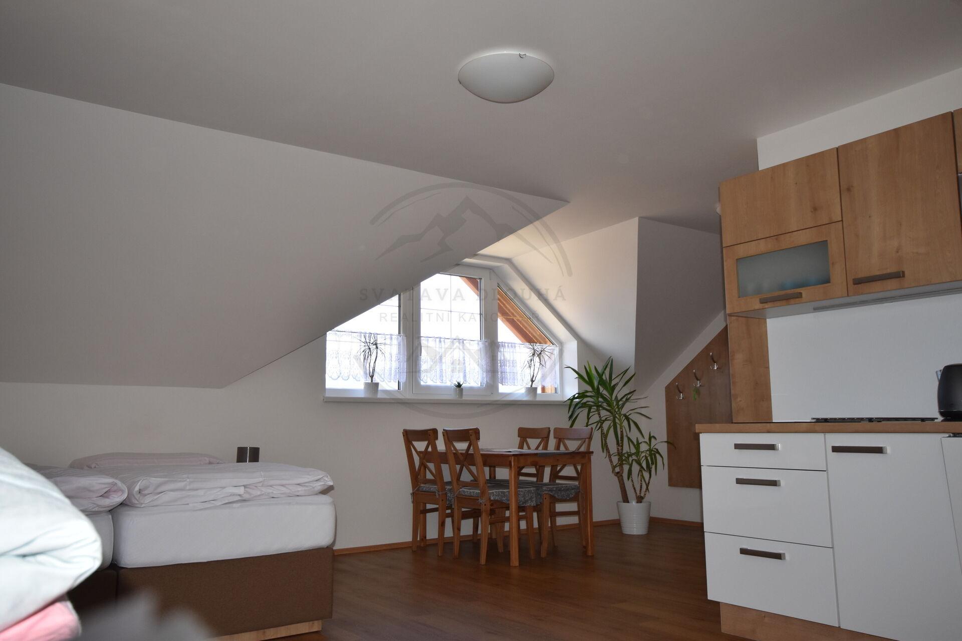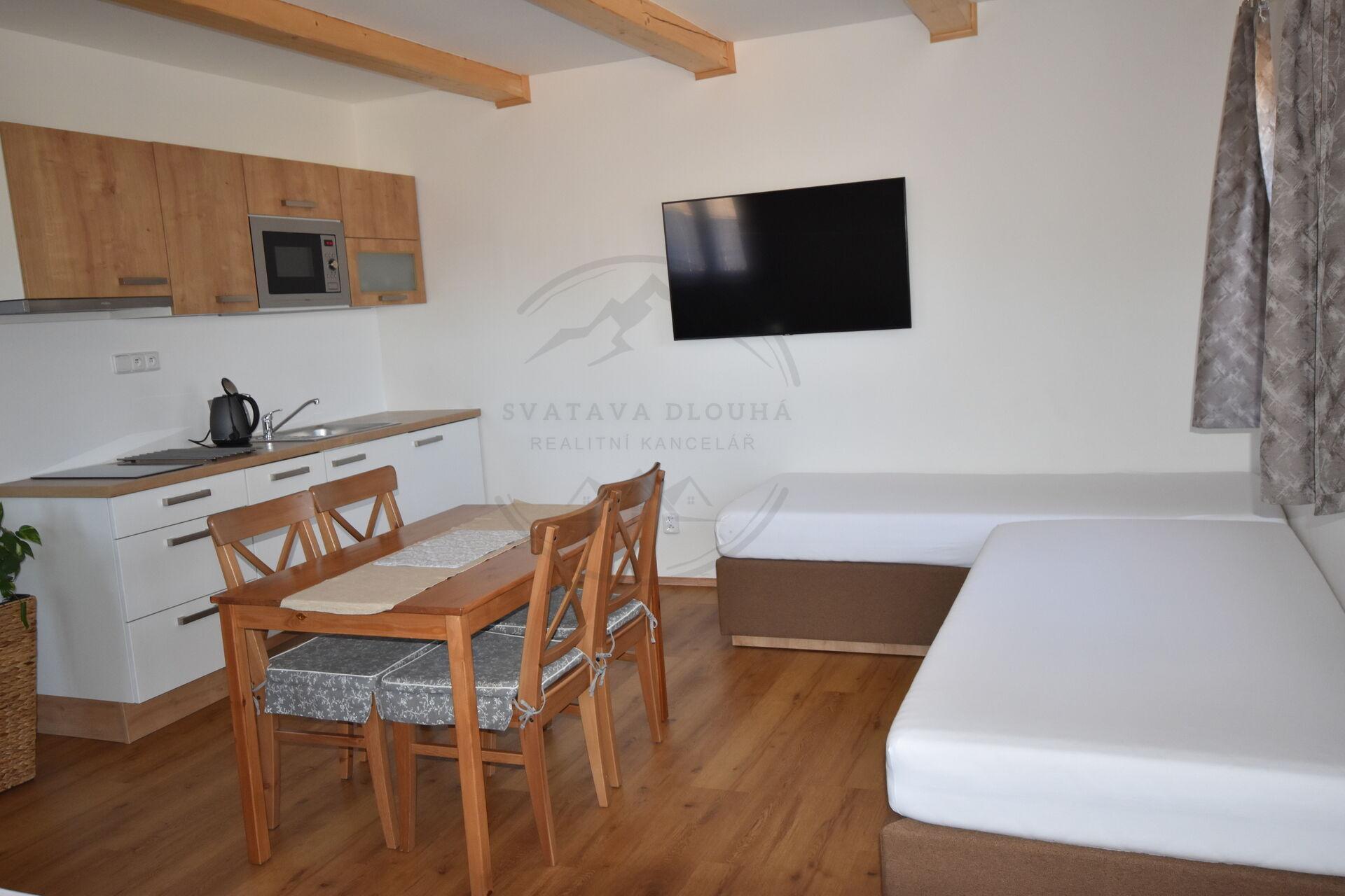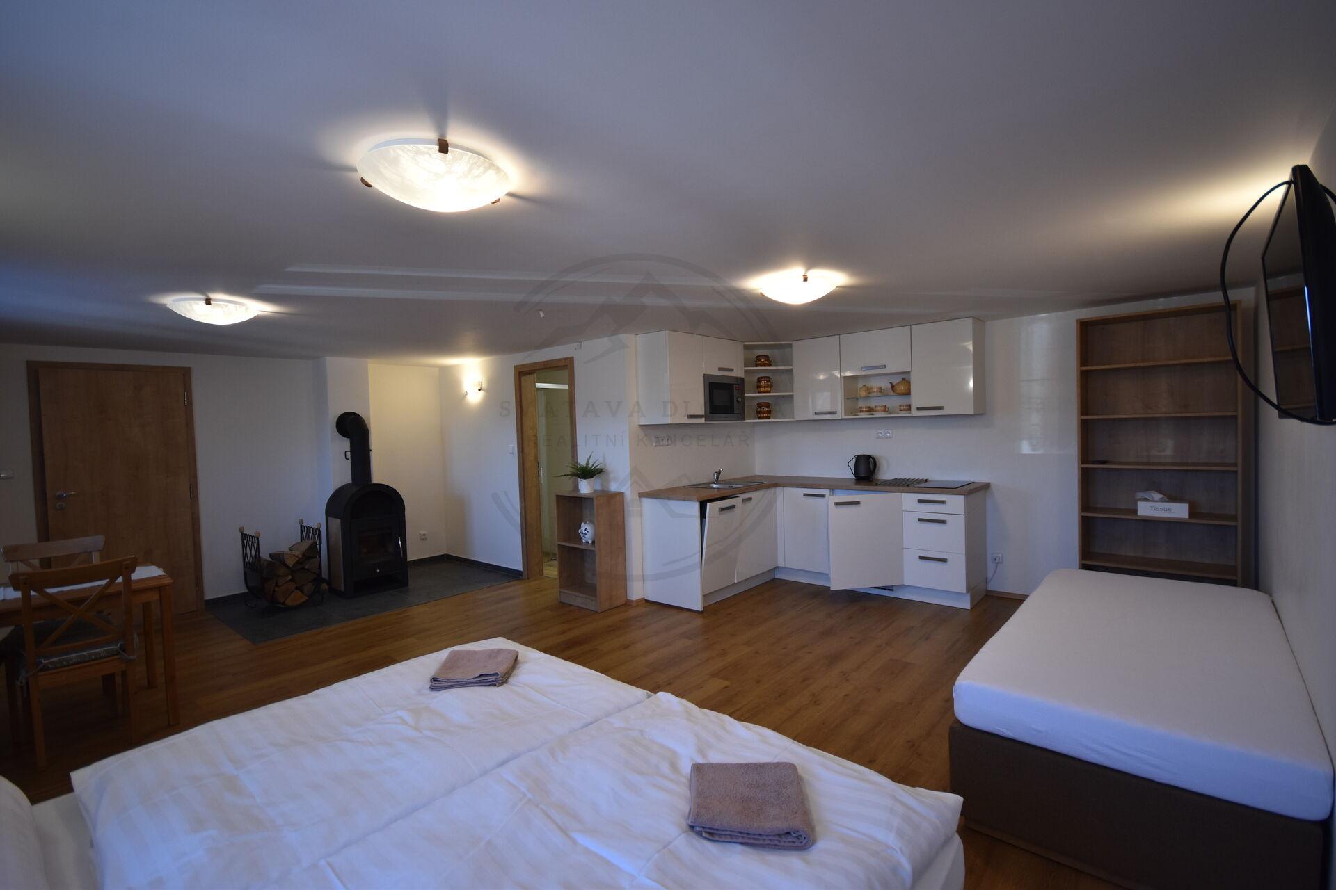 Dům má ubytovací kapacitu až 20 lůžek a je ideální pro provozování zavedeného penzionu nebo kombinaci vlastního rekreačního bydlení a krátkodobých pronájmů. Původní část objektu byla postavena v roce 1980 a v roce 2019 prošla částečnou rekonstrukcí, současně byla realizována moderní přístavba se třemi plně vybavenými apartmány.