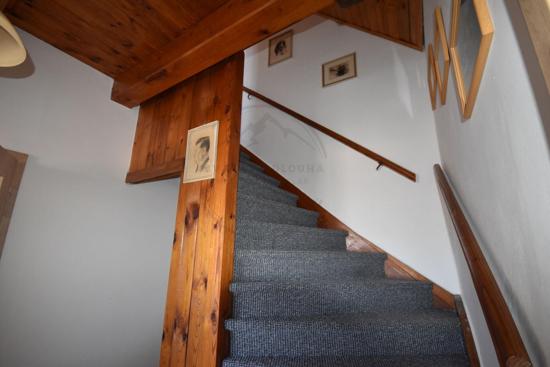 V prvním patře je situována původní část domu se společenskou místností, kuchyňským koutem, koupelnou a WC, verandou a vstupem na prostornou, slunnou terasu s nádherným výhledem do okolní krajiny. V podkroví této části se nachází dva samostatné pokoje s celkem 8 lůžky, balkonem a vlastní koupelnou u jednoho z pokojů.