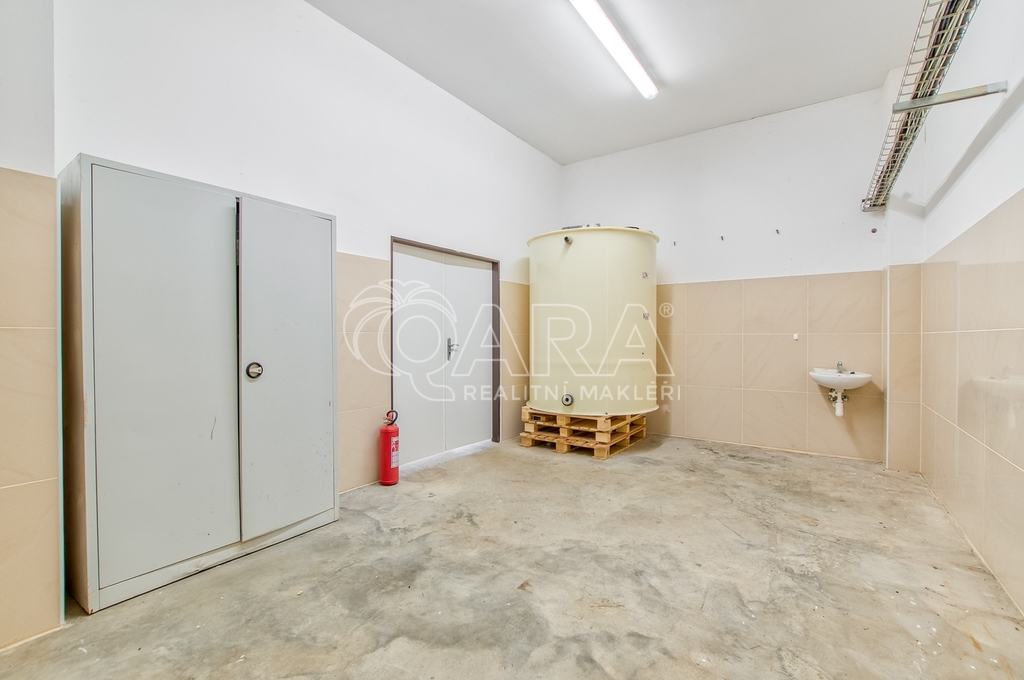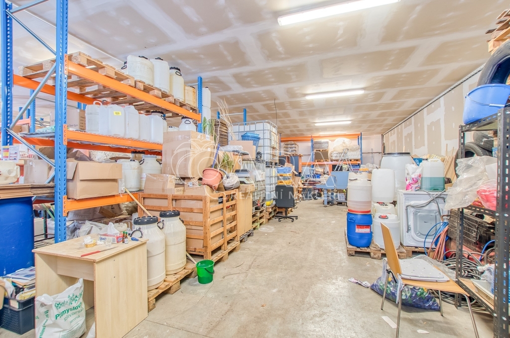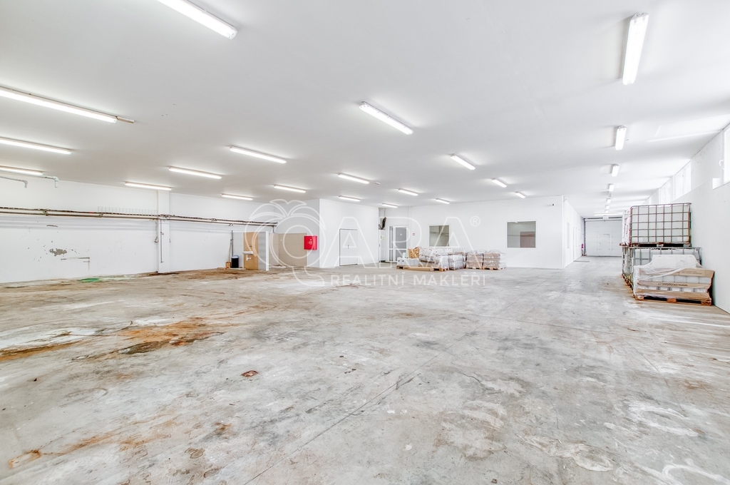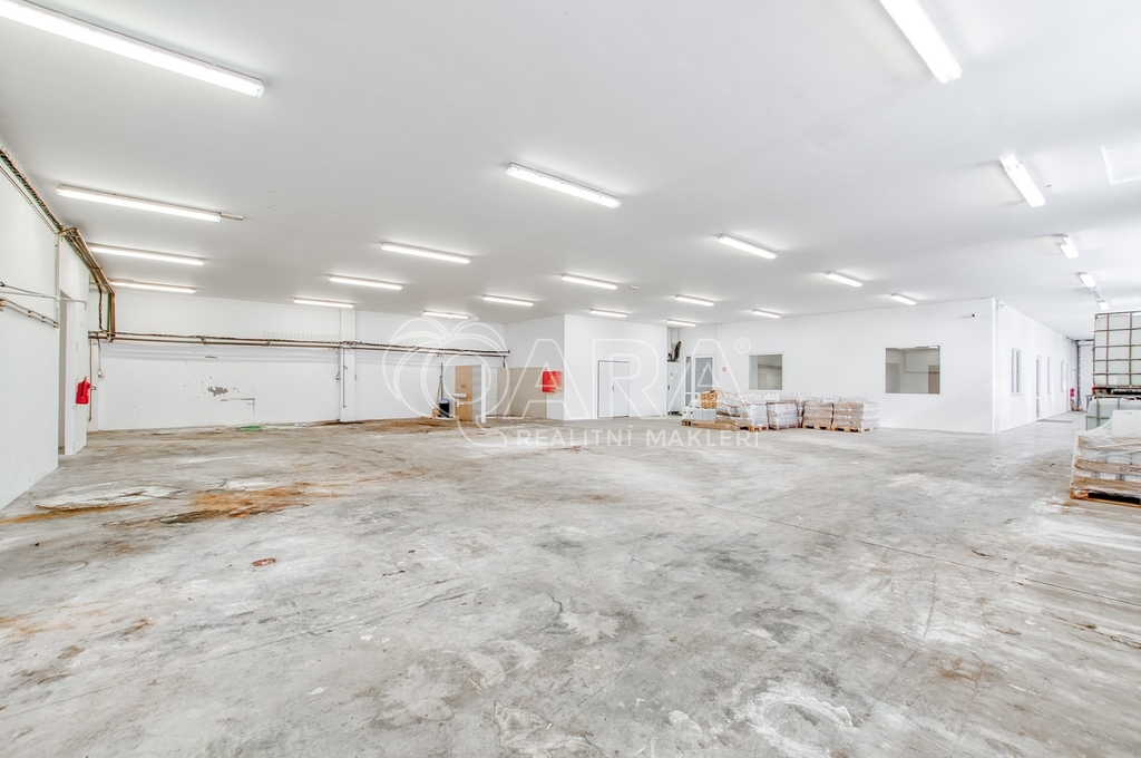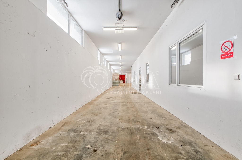 Hala je jednopodlažní, nepodsklepená a aktuálně schválená jako výrobní a skladovací stavba. Celková podlahová plocha činí přibližně 1 028,86 m². Dominantní část tvoří otevřený výrobní prostor rozdělený do navazujících celků o souhrnné výměře přibližně 786.9 m², které umožňují variabilní uspořádání technologie i skladových zón. Součástí je také administrativní část se třemi kancelářemi o výměrách 59,6 m², 27,3 m² a 27 m², kuchyní o velikosti 21,4 m² a kompletním hygienickým zázemím se čtyřmi sprchami a šesti toaletami oddělenými pro muže a ženy.