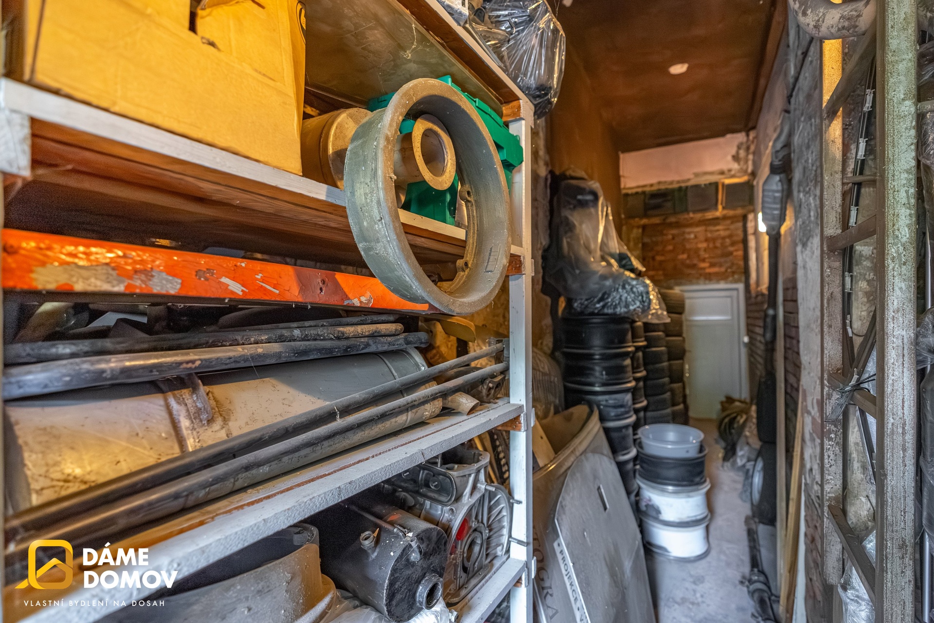 Nemovitost je v dobrém technickém stavu a je napojena na elektřinu, obecní vodovod i kanalizaci. Dominantou je hlavní místnost – „sál“ – s vjezdem přes elektricky ovládaná vrata kde uskladníte až 15 aut nebo mnoho motocyklů. Dále je zde kancelář, kuchyňka, sociální zázemí (toalety, sprcha) a sklep. Bočním průchodem se dostanete na zadní dvorek, včetně úložného prostoru a vstupu na půdu, která nabízí možnost rozšíření obytné či užitné části.