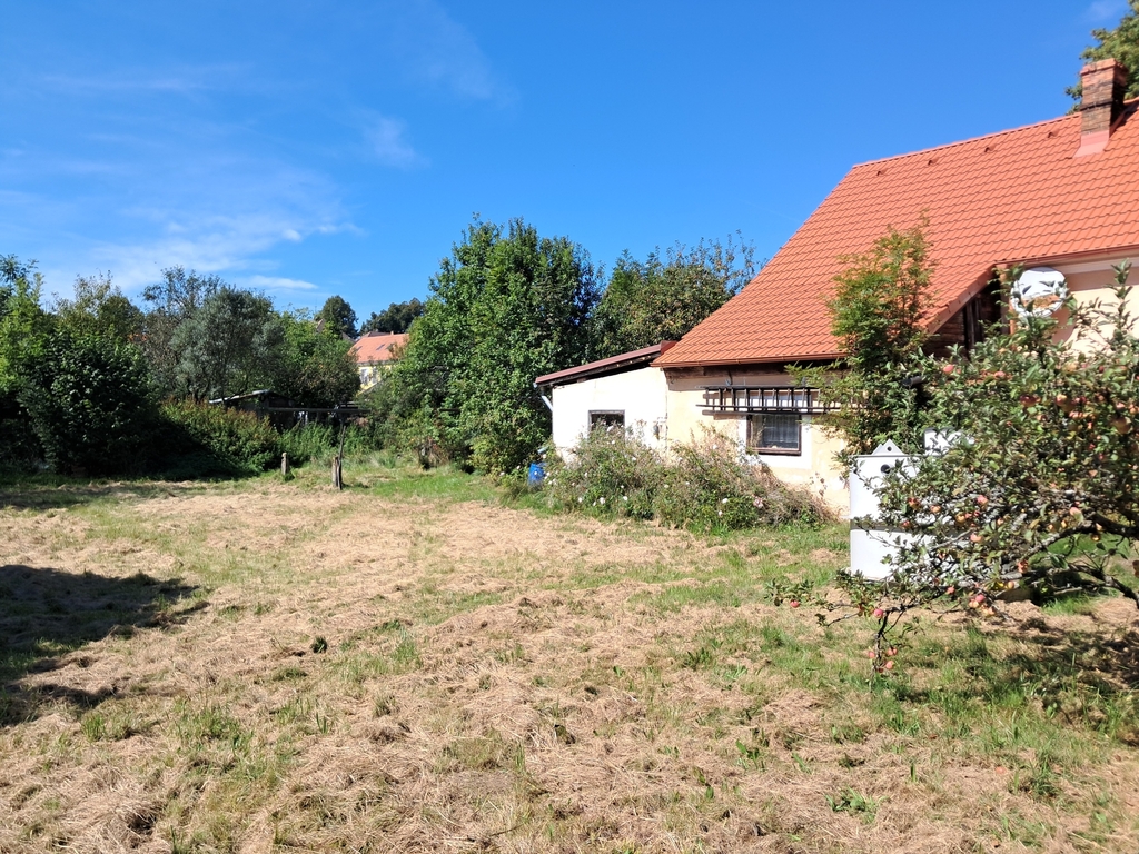 Oplocený pozemek kolem domu je rovinatý a lze ho využít jako rozlehlou zahradu nebo na rozšíření stávajícího domu, protože dle územního plánu je tento celý pozemek pozemkem stavebním.