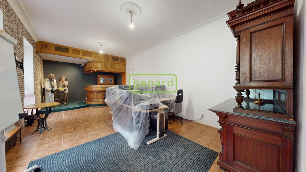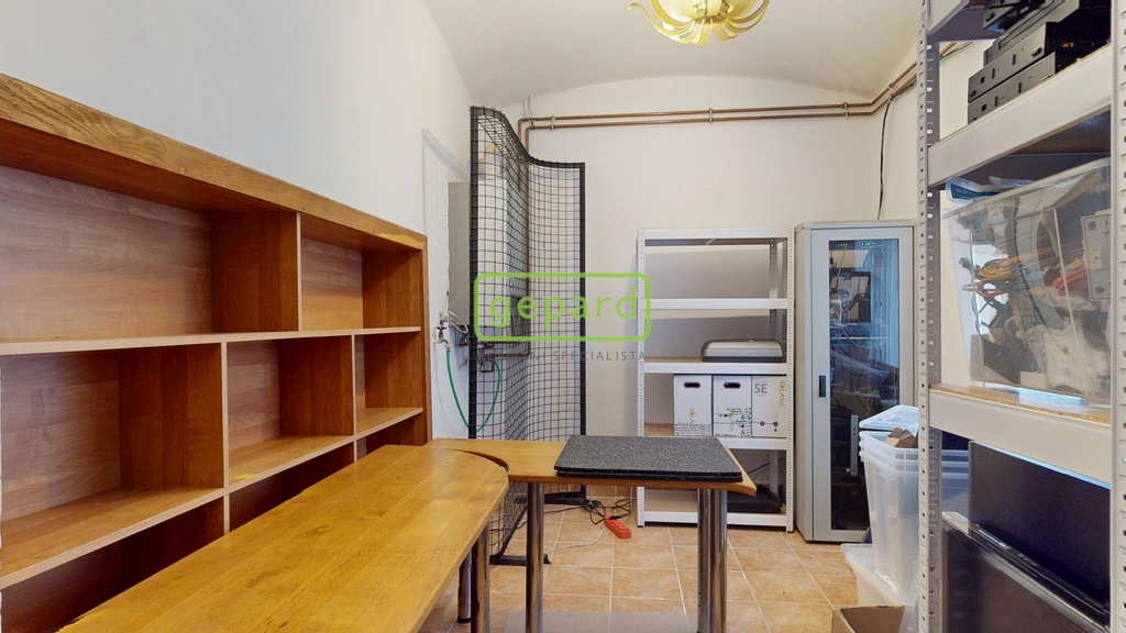 V prvním patře, dříve využívaném jako galerie, se dnes nachází kancelář a skladové zázemí. Druhé patro, kde v minulosti sídlilo muzeum, nabízí kuchyň, koupelnu, dva samostatné pokoje a pavlač se vstupem na samostatné WC s výhledem do okolí historického centra. Interiér zaujme původními dubovými dveřmi a vitrážovými okny v prvním patře, ve vyšším podlaží pak dřevěnými podlahami. Spodní část domu je řešena dlažbou.