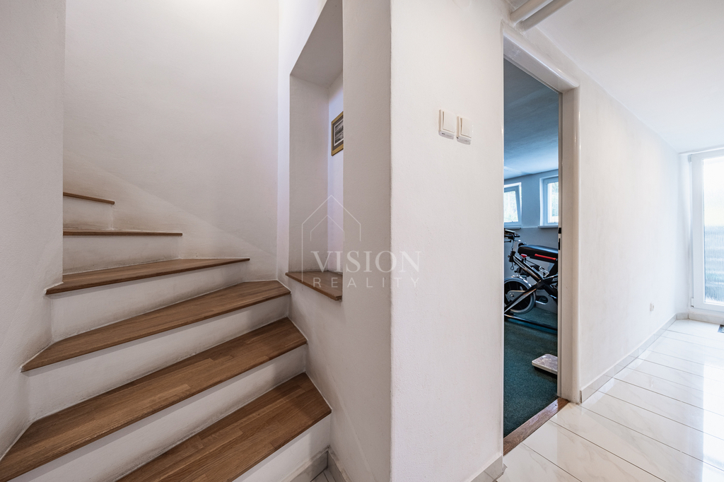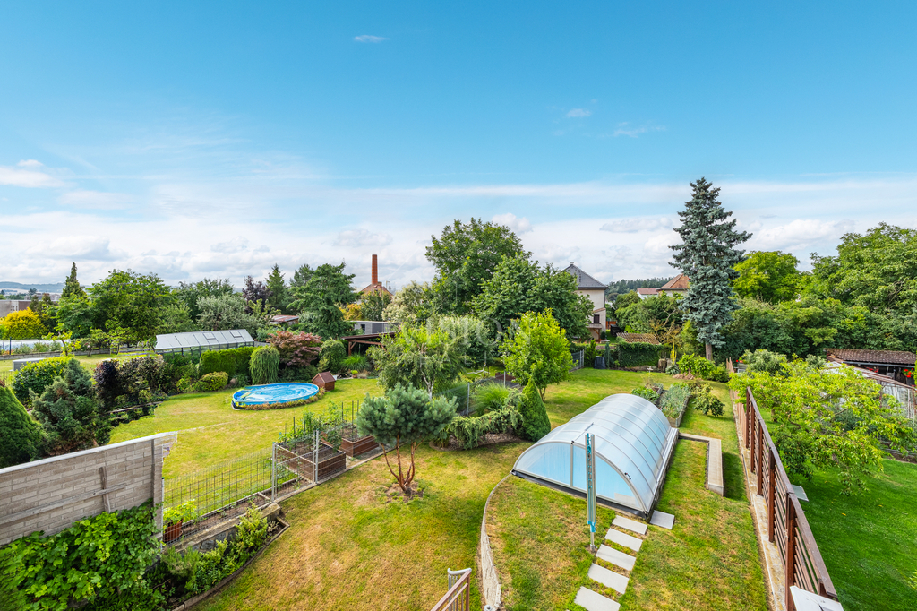 Celková plocha pozemku činí 466 m², z toho 310 m² tvoří zahrada s příjemným posezením a dostatkem soukromí. Dům je rozdělen do tří podlaží – v přízemí se nachází technické zázemí, šatna, komora, koupelna, posilovna a další úložné prostory. První patro nabízí prostorný obývací pokoj, jídelnu s přímým vstupem na terasu, kuchyň, koupelnu s vanou i sprchovým koutem a samostatné WC. Ve druhém patře najdete tři neprůchozí pokoje včetně ložnice s lodžií a koupelnu.