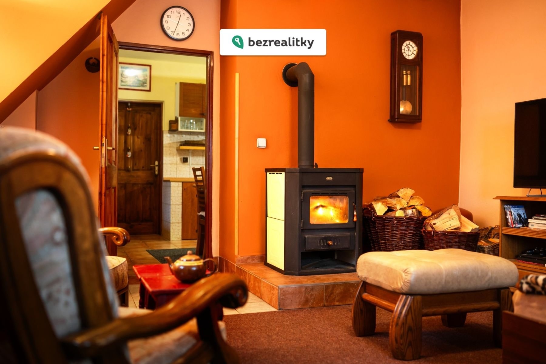 Vytápění je krbovými kamny na dřevo s výměníkem v prostoru obývací části. Nejenom, že rozvede teplo po celém domě, ale přes velké sklo kamen vytvoří příjemnou atmosféru, ideální pro posezení. Elektrická energie - E.ON. Dále je dům napojen na vodu ze studny a již nyní obec oznámila budoucí napojení na veřejný vodovod. Odpadní voda je odvedena do ČOV na pozemku. Okna plastová s izolačním dvojsklem, zateplení celého pláště budovy 10cm minerální vaty, 2 střešní okna.