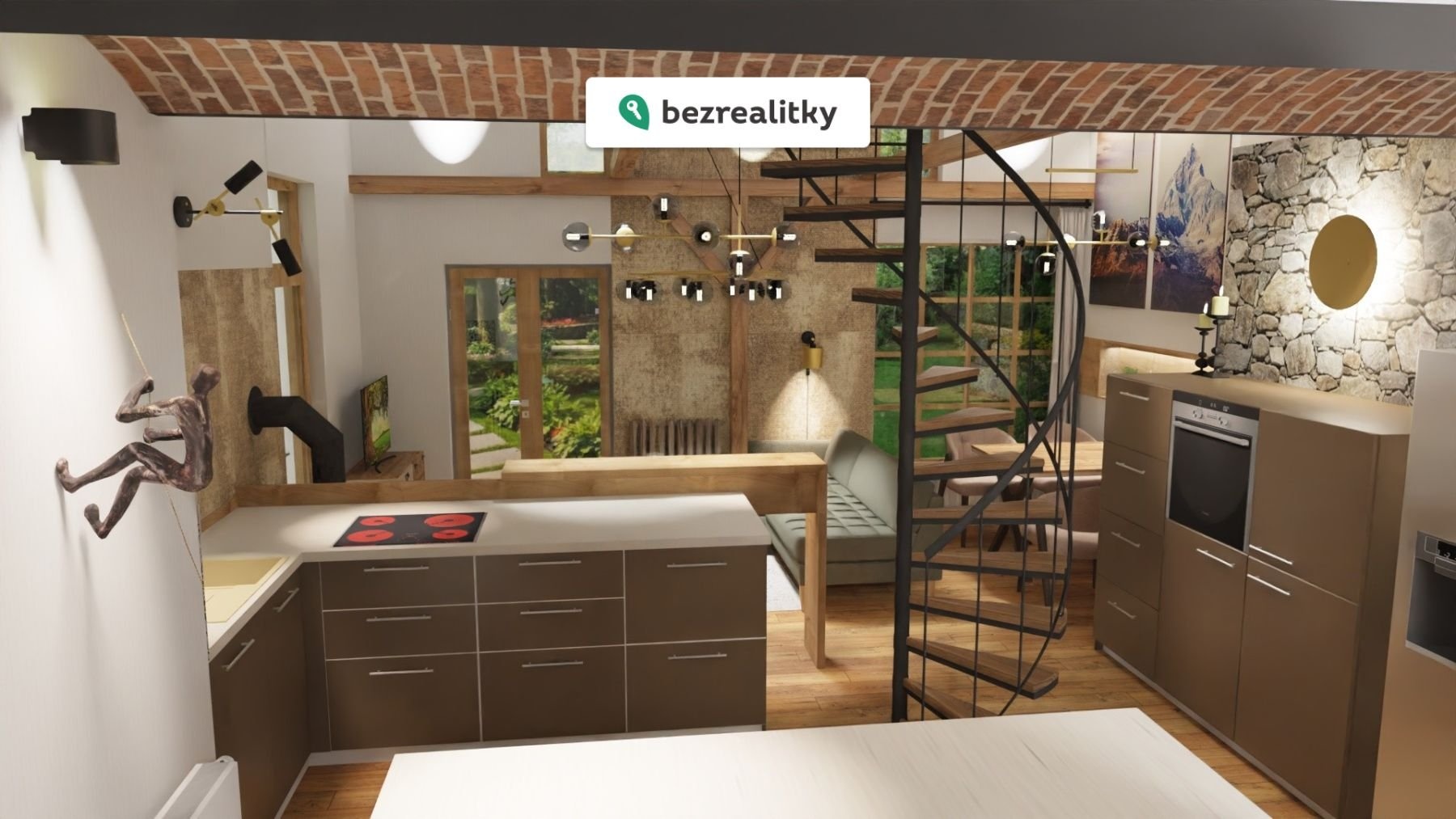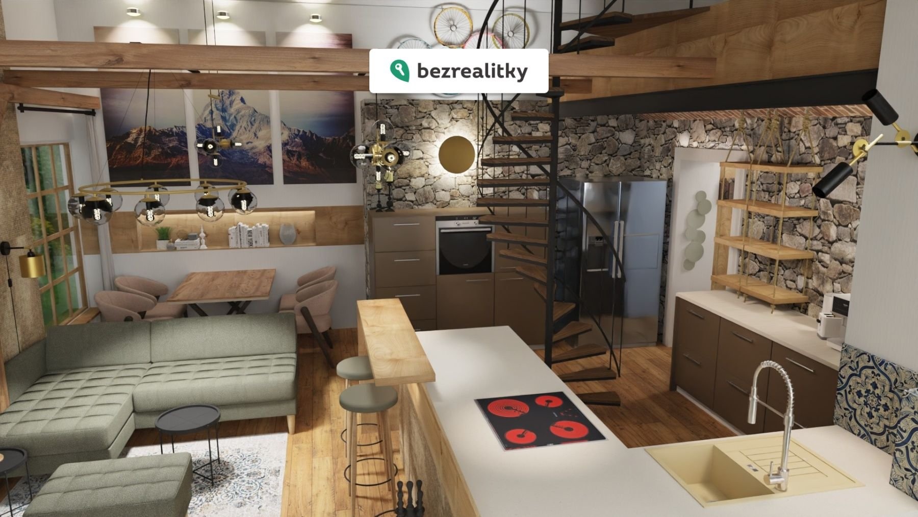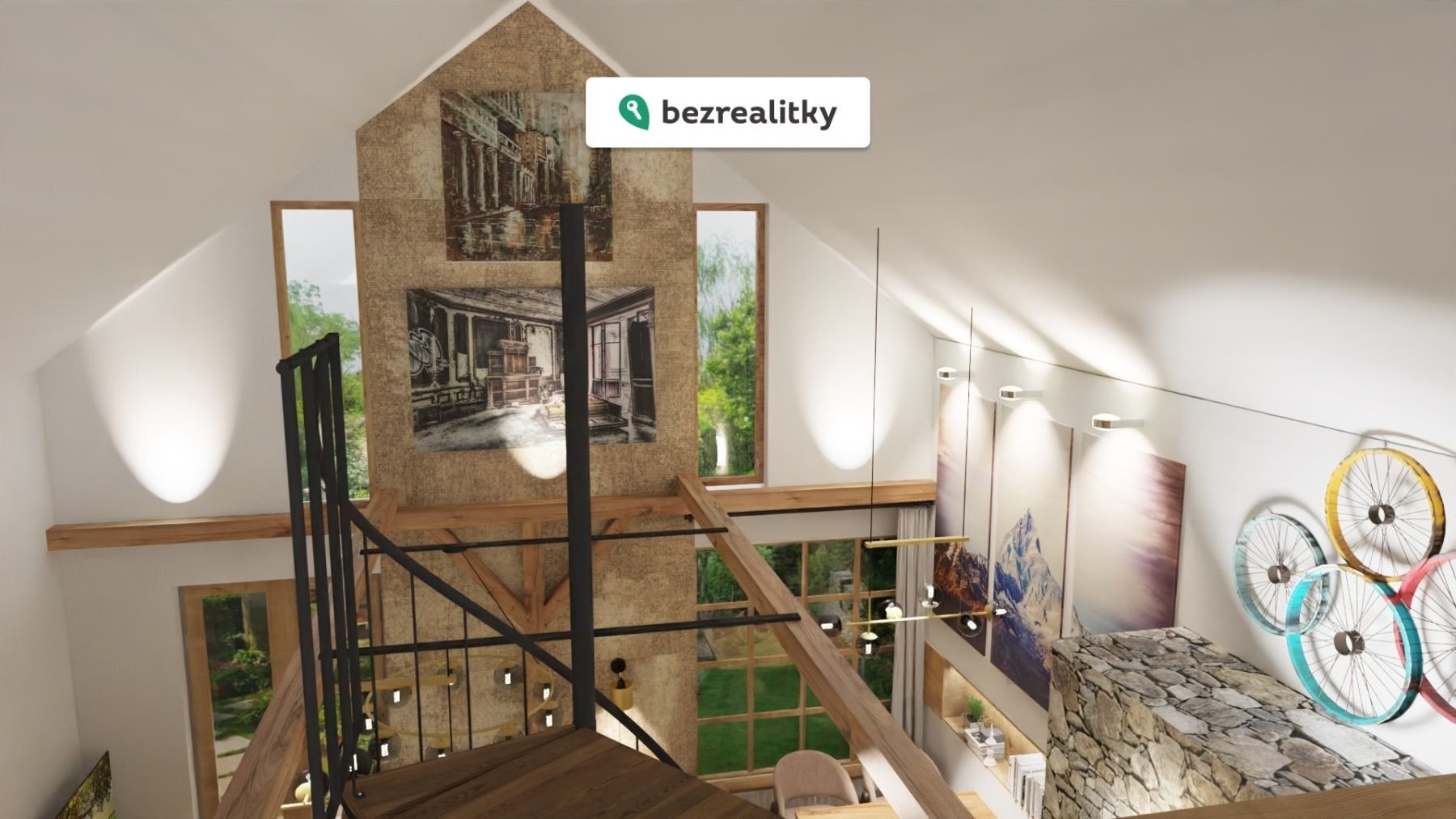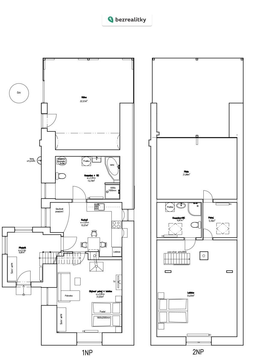 Dům má obrovský potenciál, lze rozšířit o další přízemní i půdní pokoje (64m2). Ve 3D vizualizaci se změnou dispozice, se obývací část s kuchyní, krbem a jídelnou, přesouvá do výhodnější polohy pro ještě lepší propojení se zahradou a polohou altánku se zděným krbem. Neskutečně vzdušně na Vás bude působit posezení na centrální pohovce nad kterou je otevřený strop až do krovu. Dlouhé zasklení a pozice oken bude se světelnou atmosférou podtrhovat výhled na upravenou zahradu v plném Vašem soukromí, kam sousedé nevidí. Rozměry altánku jsou 6,5x3,6m, takže velice prostorný i třeba pro zaparkování auta nebo motorky.