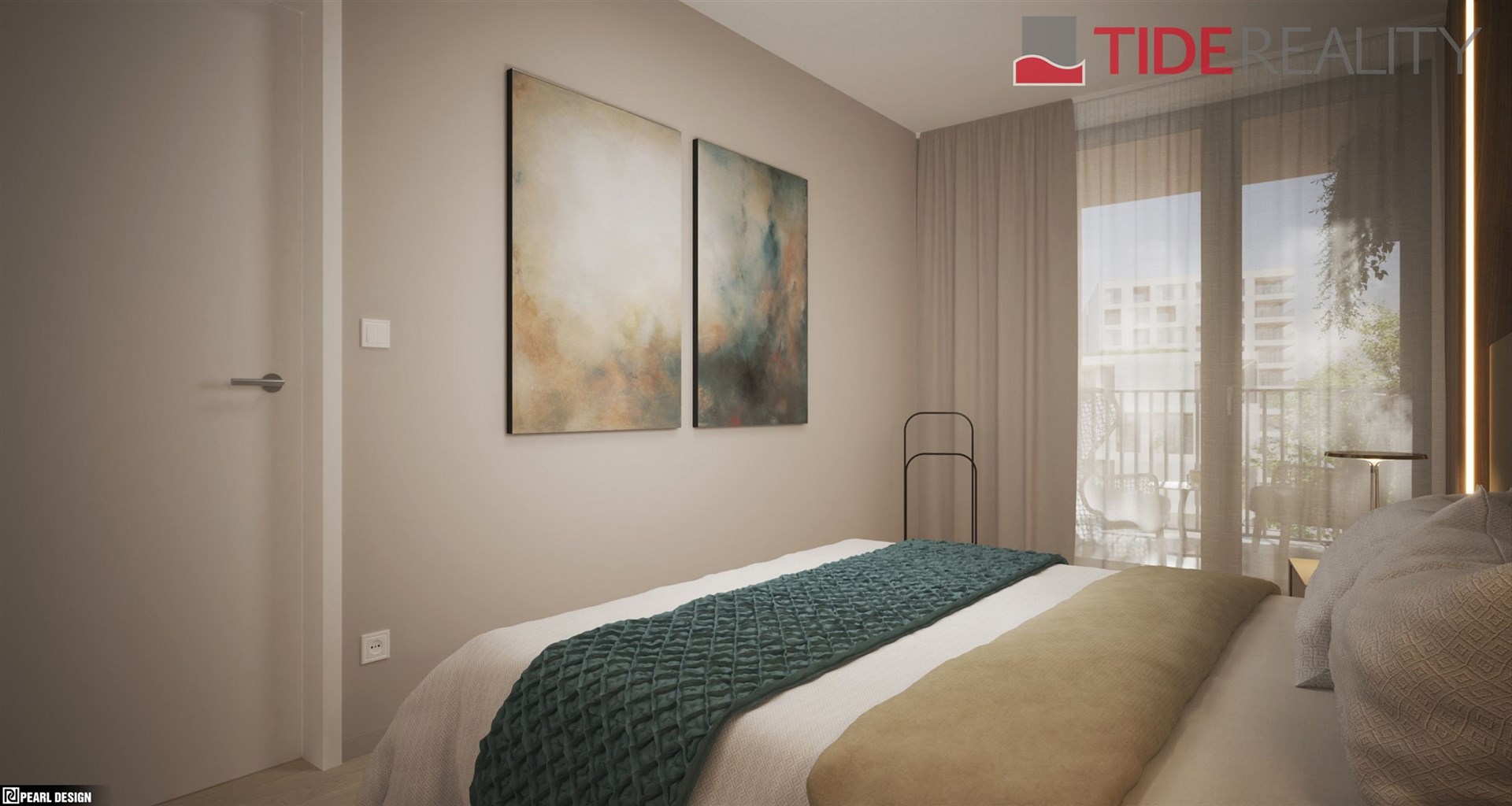 Tento slunný, západně orientovaný byt s lodžií do příjemného vnitrobloku, je řešen jako 2+kk o podlahové ploše 53 m2 + 4 m2 lodžie. Byt je situovaný ve 1. patře budovy B a skládá se z obývacího pokoje s kuchyňským koutem, ložnice, koupelny a předsíně. Standardní vybavení bytů zahrnuje plovoucí podlahy, interiérové dveře s výškou 210 cm, moderní vybavení koupelen, okna s barevným rámem a izolačním trojsklem, přípravu na vnější žaluzie. V bytech budou moderní datové rozvody formou strukturované kabeláže a přípojka STA. V projektu bude využita smart technologie pro vytápění, která pracuje se dvěma tepelnými zdroji – tepelnými čerpadly a zemním plynem. Dostatečná kapacita parkovacích míst převážně v podzemních garážích, ale i venku. Jedná se o velkoryse koncipovaný soubor bytových domů umístěných v zeleni nabídne široké rozpětí bytů od 1+kk po 5+kk s terasami, balkony či předzahrádkami.