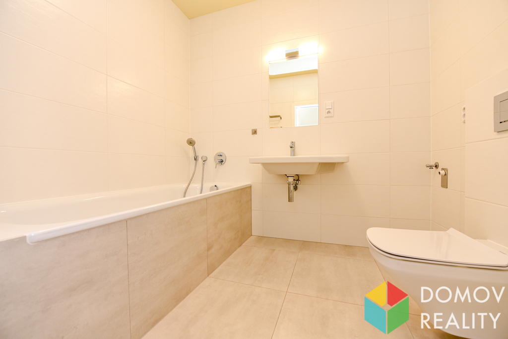 V bytě jsou k dispozici dvě koupelny, jedna se sprchovým koutem a druhá s vanou. K ukládání velkého množství věcí Vám poslouží elegantní a hlavně praktické vestavěné skříně od firmy Komandor v ložnicích a v chodbách v obou patrech.