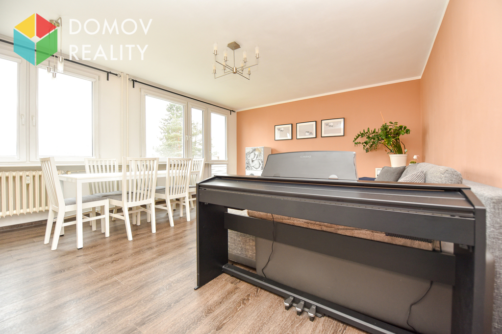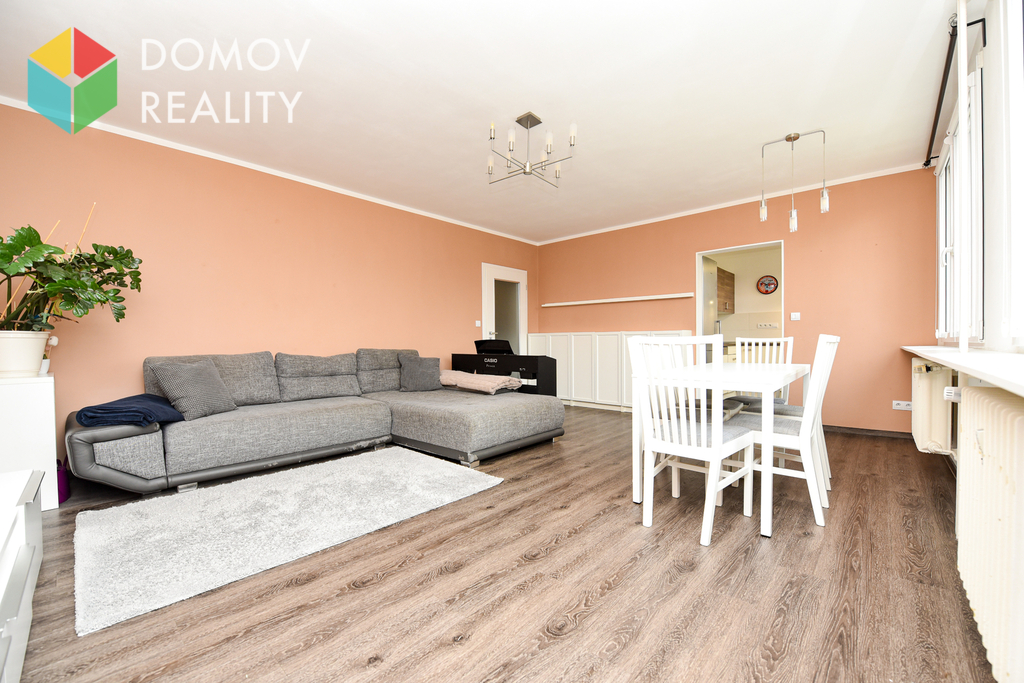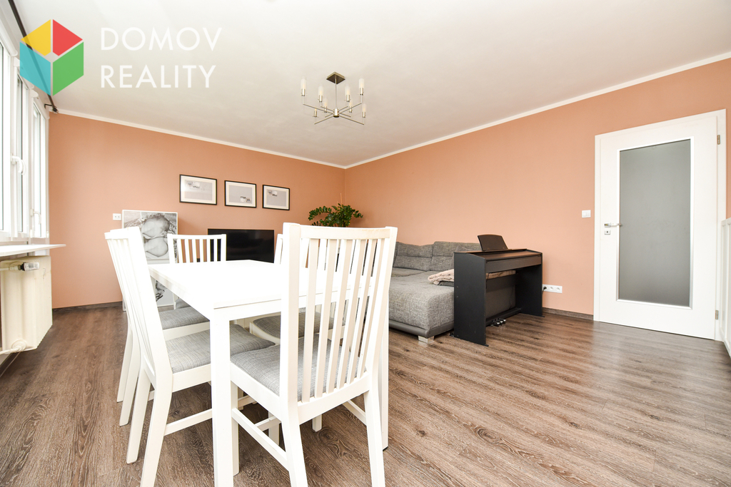 Původní dispozice 4+1 byla citlivě upravena na vzdušný a velmi komfortní 3+1, který nabízí dostatek prostoru i praktické uspořádání pro rodinné bydlení.