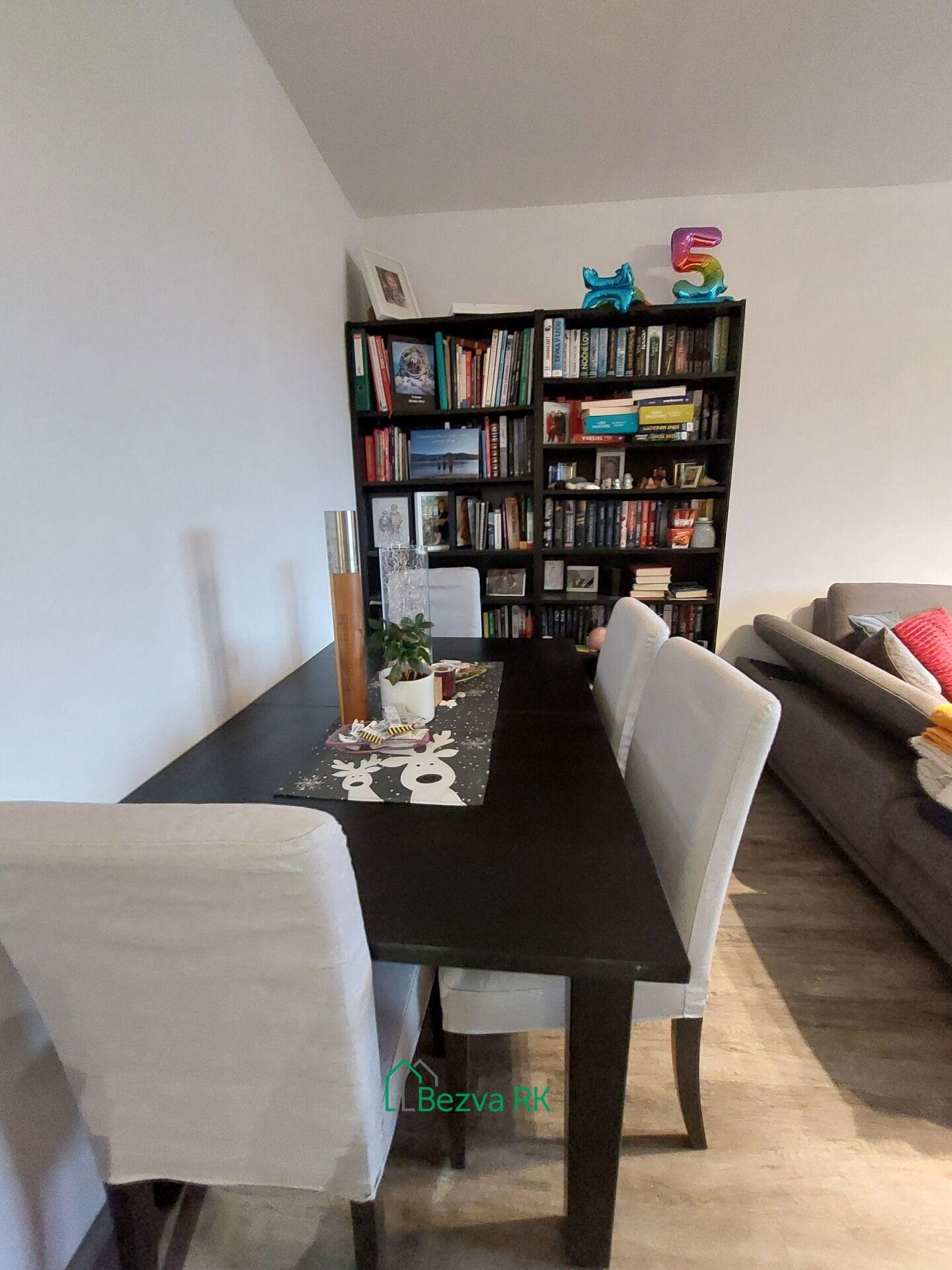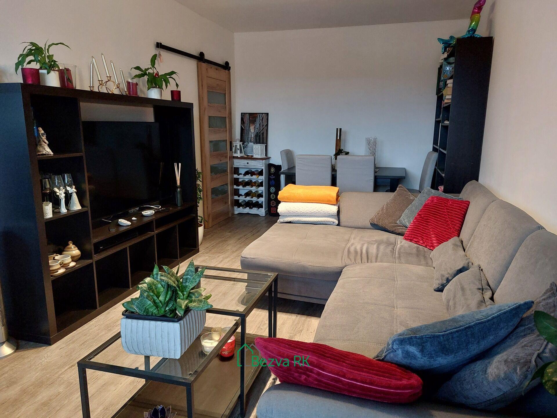 Dispozice bytu byla před dvěma roky přestavena na 2+kk, zároveň v bytě proběhla kompletní rekonstrukce (elektroinstalace, nové vinylové podlahy v obývacím pokoji, dlažba v chodbě a kuchyni). Vstupní chodba poskytuje dostatek úložného prostoru a umožňuje vstup do všech místností. Srdcem bytu je světlý obývací pokoj s kuchyňským koutem, který nabízí přímý vstup na lodžii. Mezi další prostory patří ložnice, která nabízí přímý vstup na druhou lodžii. Také zděná koupelna s toaletou a sprchovým koutem prošla kompletní rekonstrukcí před dvěma roky ( obklady, dlažba, rozvody vody). Předností je velká komora v bytě. K bytu patří sklípek v suterénu bytového domu. Ohřev vody a vytápění zajišťuje tepelné čerpadlo.