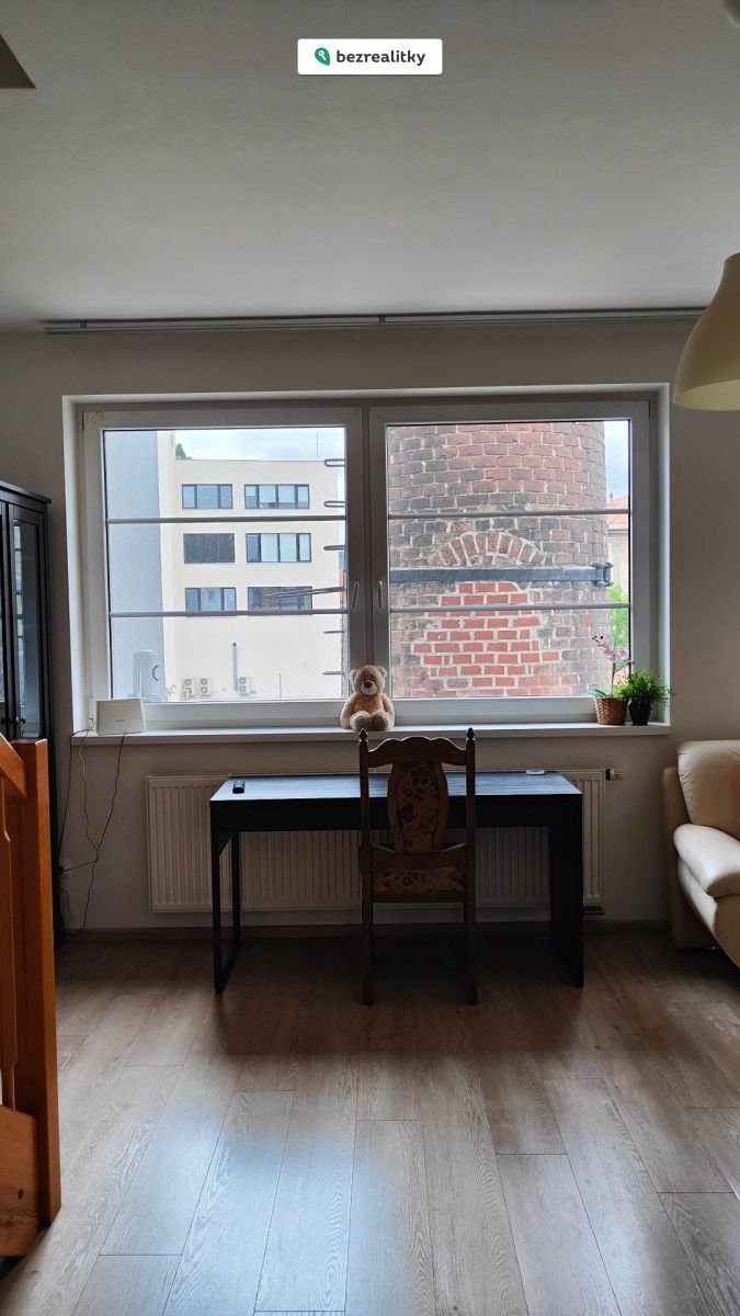 Spodnímu patru dominuje obrovský obývací pokoj. Je vzdušný, světlý a nabízí unikátní výhled na historický komín a okolní architekturu. Ideální prostor pro reprezentaci nebo relax. Kuchyně je chytře řešená a plně vybavená.