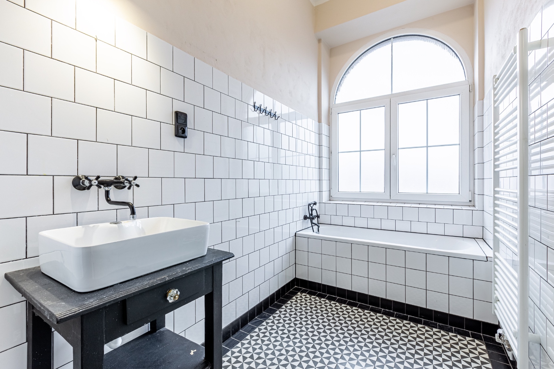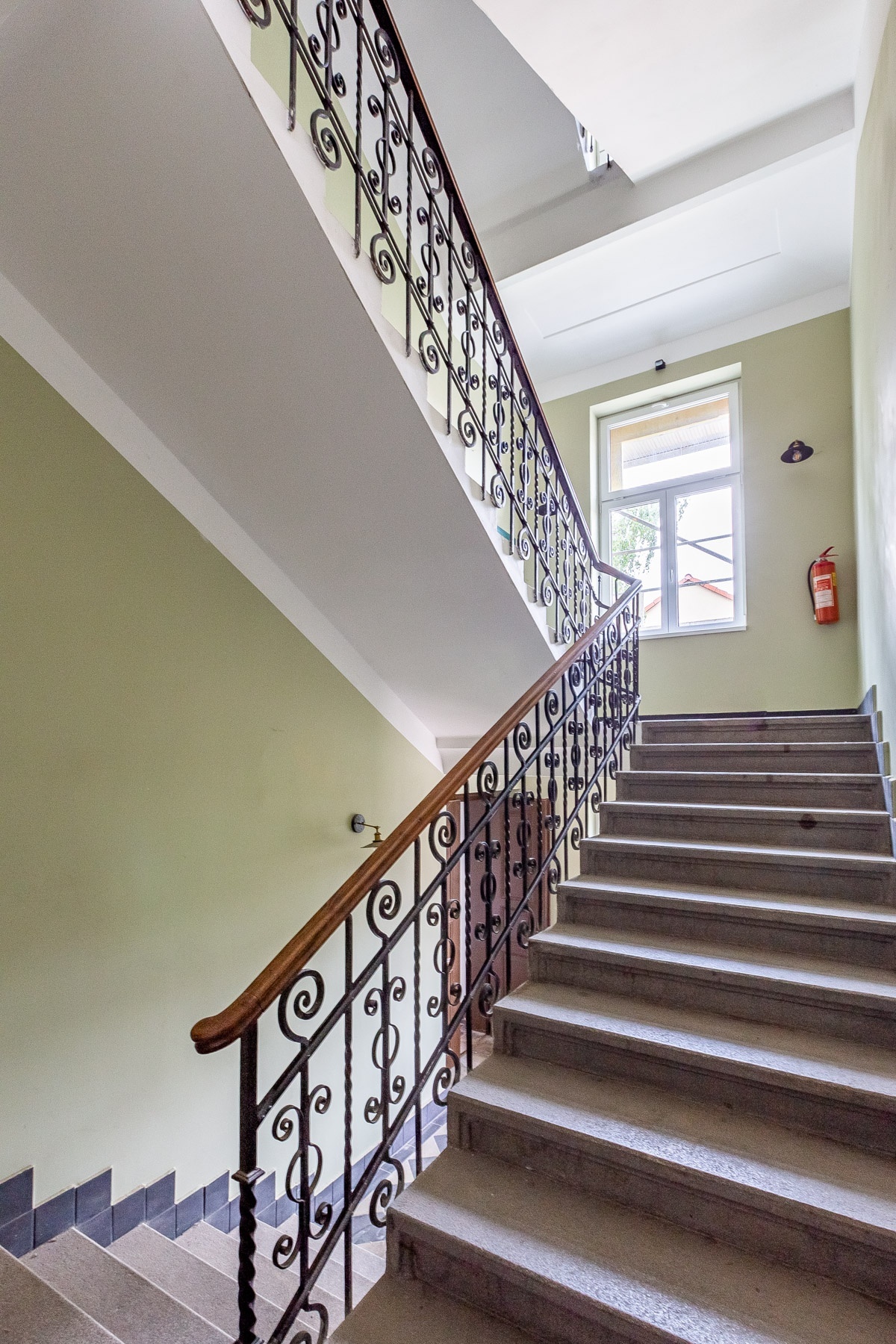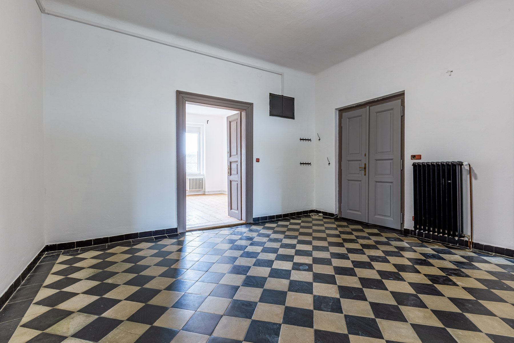 Jednotka sestává z obývacího pokoje, kuchyně, třech pokojů, koupelny, samostatného WC, komory a vstupní haly. Kuchyně je vybavena kuchyňskou linkou se spotřebiči, byt je jinak nezařízený. Místnosti jsou prostorné, navíc díky vysokým stropům velice vzdušné.
