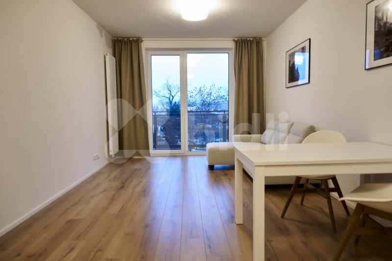 Exkluzivně nabízíme pronájem nového bytu 2+kk, vel. 55 m2 s prostorným balkonem, šatnou a garážovým parkovacím stáním, v těsné blízkosti centra města, ulice Na Náhonu. Byt se nachází ve 3. NP v cihlové novostavbě kolaudované v roce 2022. Celý dům je energeticky velmi úsporný, PENB "B". Dům je bezbarierový s výtahem i do garáže. V domě je k dispozici společný prostor pro ukládání kol a kočárků. Ohřev teplé vody a vytápění je zajištěn dálkově. Byt je částečně zařízen moderním vybavením. V bytě je nová kuchyňská linka s vestavnými spotřebiči (horkovzdušná trouba, MVT, myčka, indukční varná deska, výkonná digestoř, lednice s mrazákem), jídelní stůl, 2x židle.