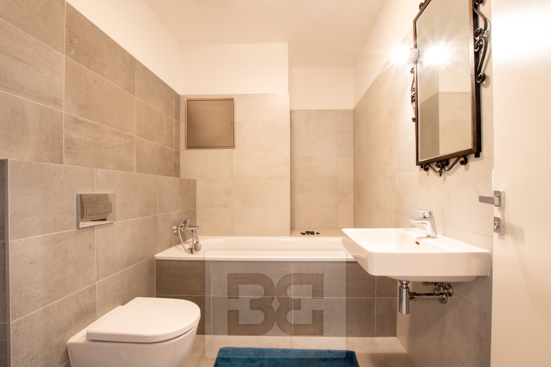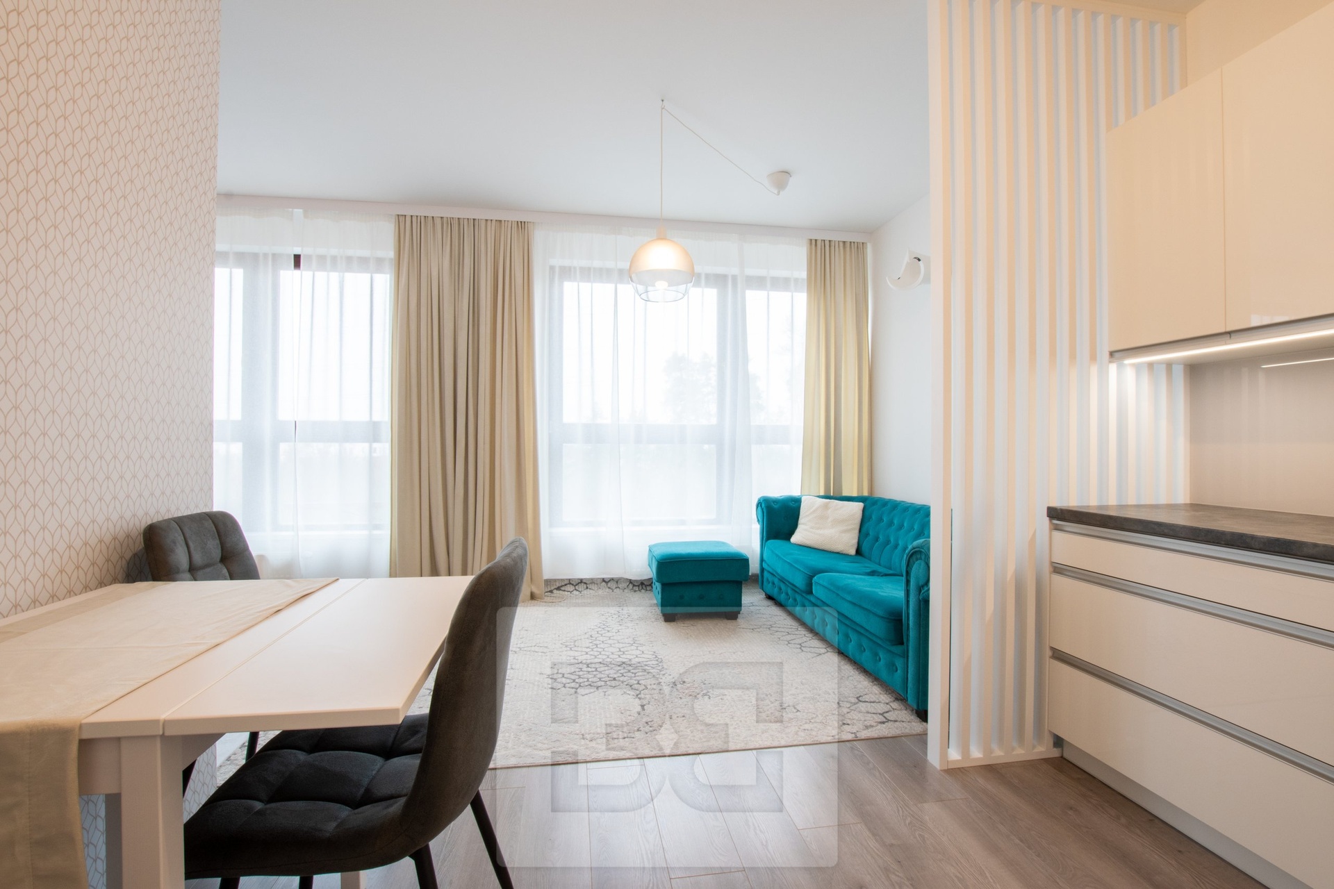 Nabízíme k pronájmu krásný, moderně zařízený byt 1+kk o velikosti 44 m², který se nachází ve 2. nadzemním podlaží novostavby. Byt je světlý, vzdušný a připravený k okamžnému nastěhování. Součástí je moderní kuchyňská linka vybavená spotřebiči – lednicí s mrazákem, indukční varnou deskou, troubou, digestoří a myčkou. Obývací část je zařízena pohovkou a praktickou vestavěnou skříní, která chytře odděluje spací zónu s manželskou postelí. V předsíni bytu je další vestavěná skříň poskytující dostatek úložného prostoru. Koupelna je vybavena vanou a toaletou. Komfort bydlení zvyšují také venkovní elektrické rolety. K bytu náleží vlastní parkovací stání přímo před domem.