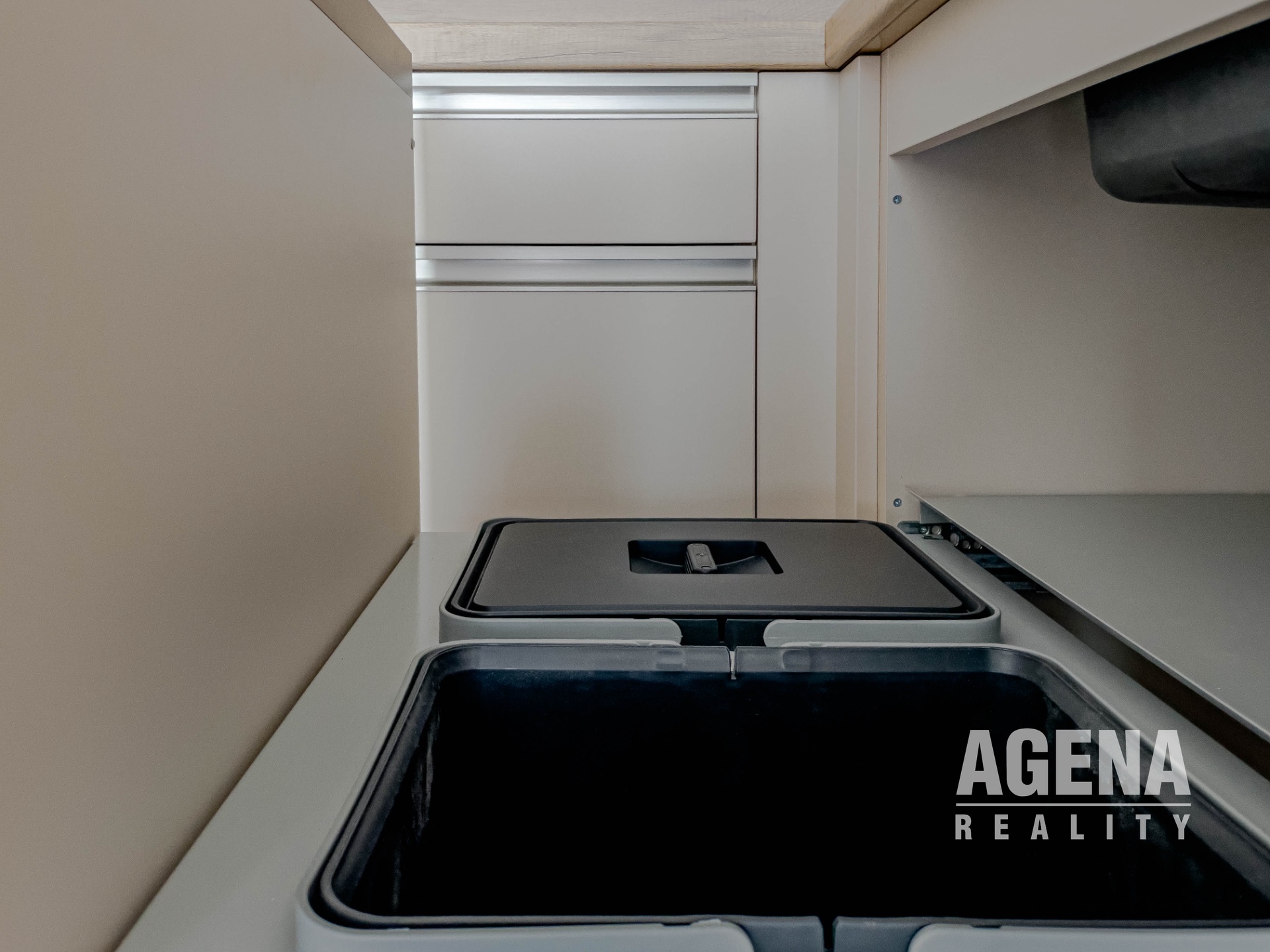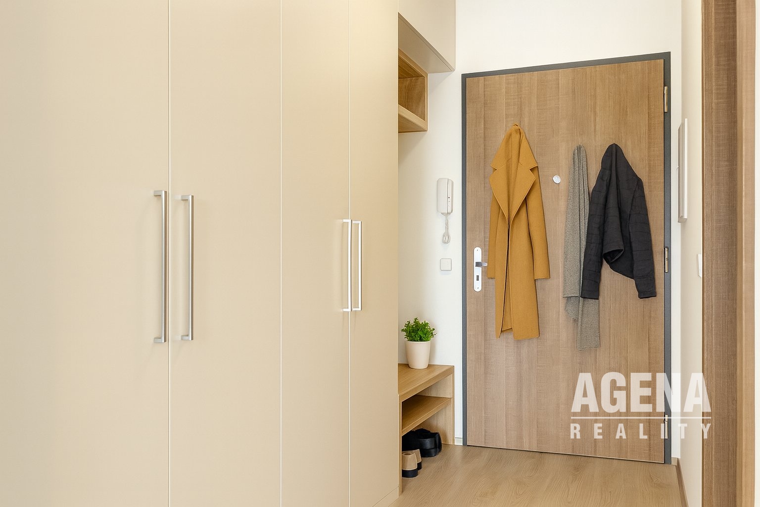 No a samozřejmě taky spousta úložných prostor na všechny vaše věci zajistí prostorný sklep na patře naproti bytu. Chodba je vybavena vestavnou skříní a botníkem na míru, která poskytuje další úložný prostor. V oknech jsou instalované rolety, záclony a závěsy, aby byl zaručen komfort a soukromí. Ve všech místnostech jsou LED stropní světla pro úsporu elektřiny a dokonalou atmosféru.