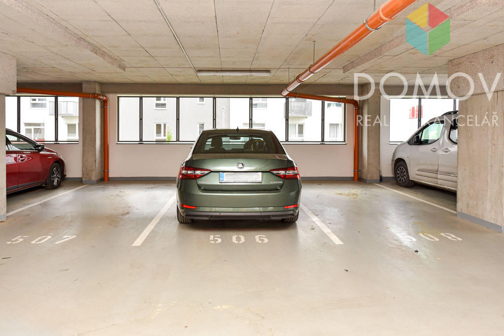 Byt se nachází v nejvyšším 5. NP bytového domu s výtahem, který byl kolaudovaný v roce 2020. Dům je bezbariérový, výtahem se dostanete až do garáže, kde v ceně máte vlastní parkovací místo. K bytu patří také sklepní koje.