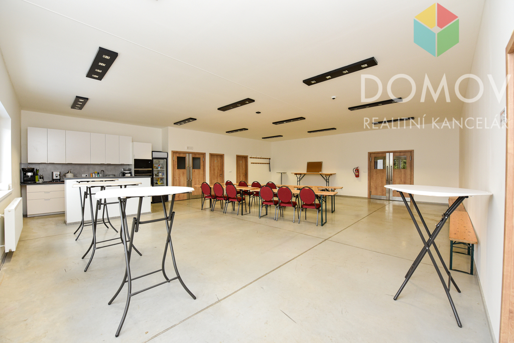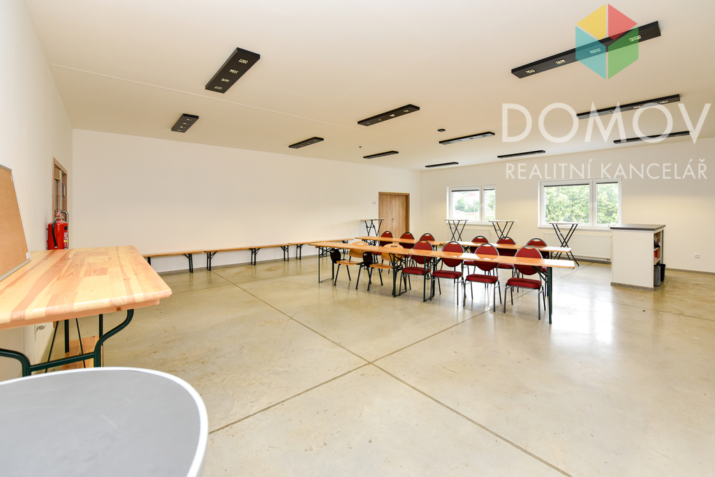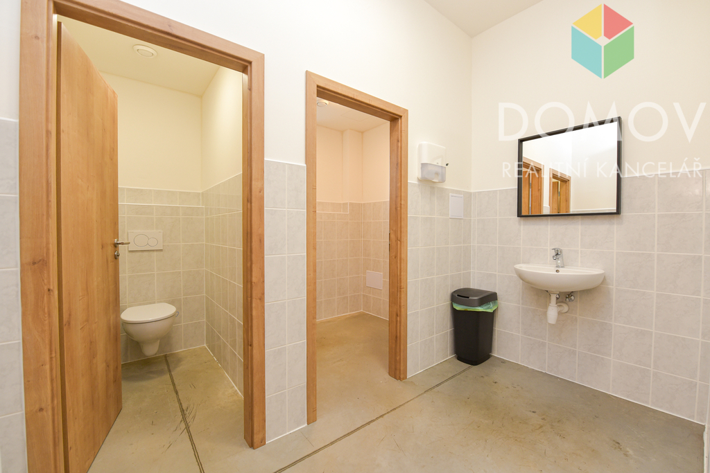 Kromě haly nájemce může používat dvoje společné toalety a velkou místnost (88,6 m2) s vybaveným kuchyňským koutem. Po domluvě lze tento prostor využívat jako školící místnost, jsou tam k dispozici židle, stoly i tabule.