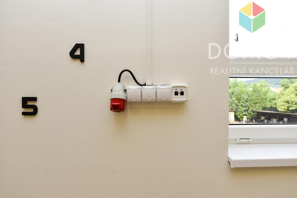 Prostor má dostatečné množství kvalitních zářivek i el. zásuvek, datové zásuvky, internet je k dispozici v ceně nájmu (možnost vlastního AP). Najdeme tam 3 okna, díky tomu se také nabízí varianta stavebně místnost přepažit. Případně jsou k dispozici hned vedle 2 kanceláře (2x 39 m2), které jsou také nabízeny k pronájmu.