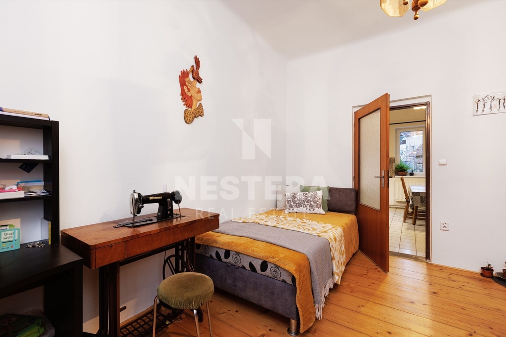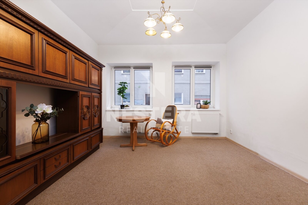 • BJ 3+1 s výměrou 56,96 m². Byt je po rekonstrukci a je rozdělen na chodbu, ložnici s okny do ulice, malý pokojíček, obývací pokoj s okny do ulice, koupelnu se sprchovým koutem s vaničkou a toaletou a kuchyni s okny do dvora.
