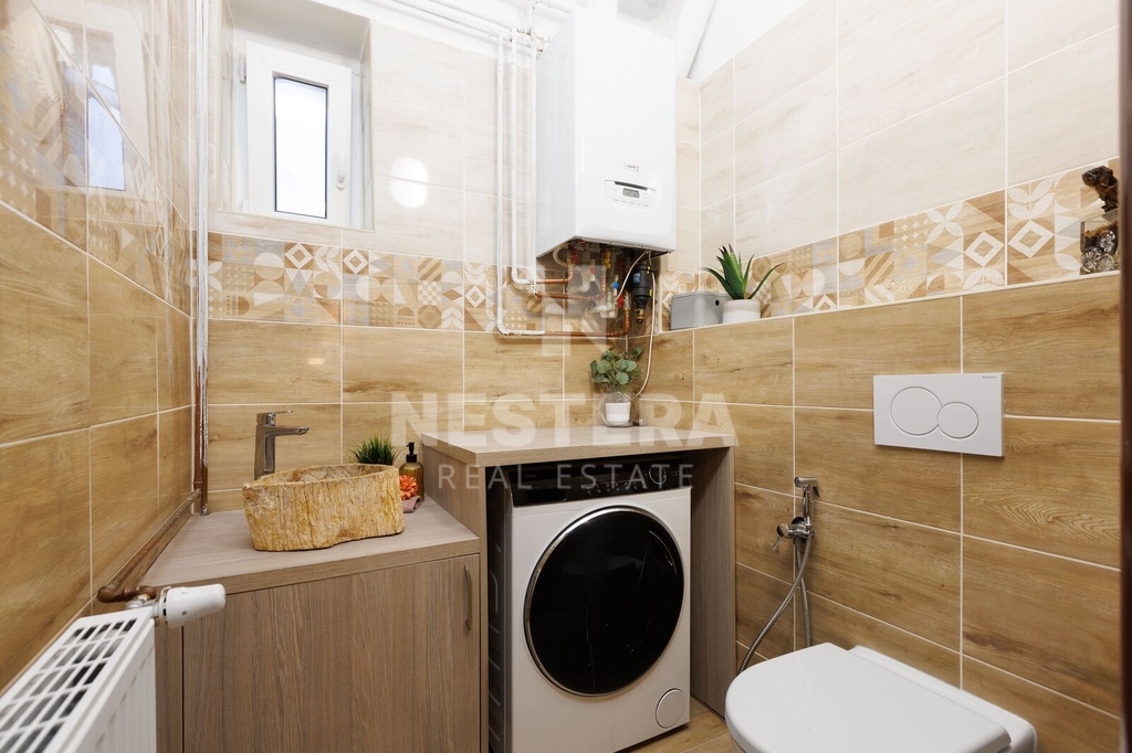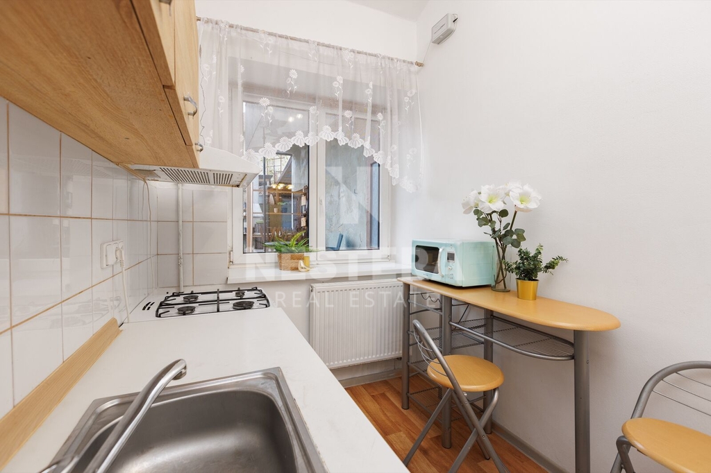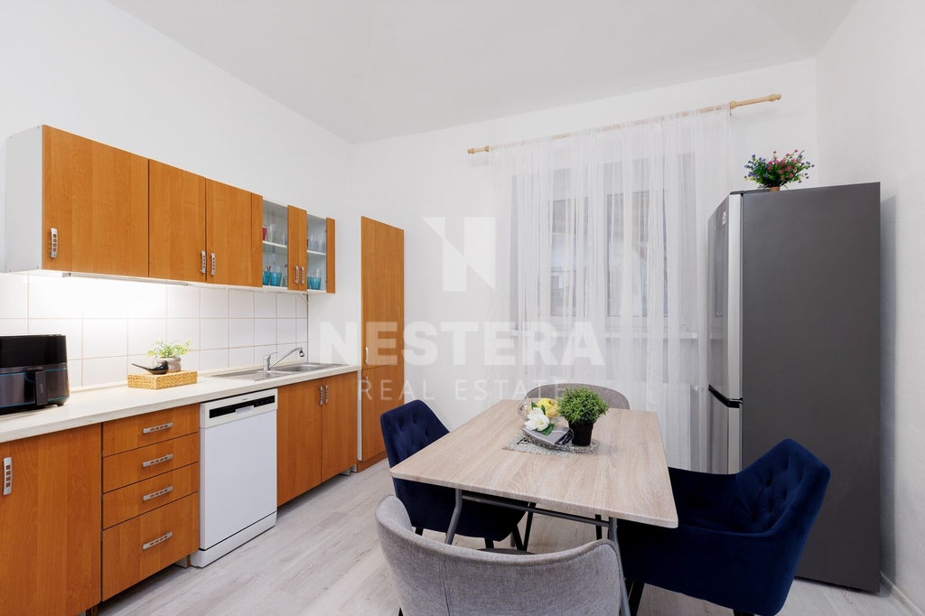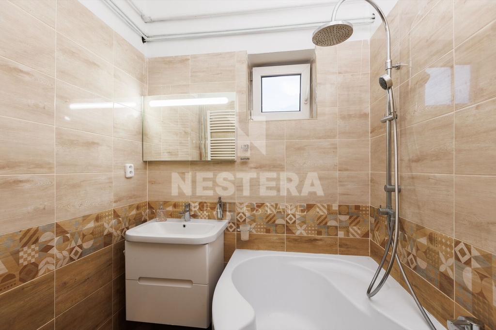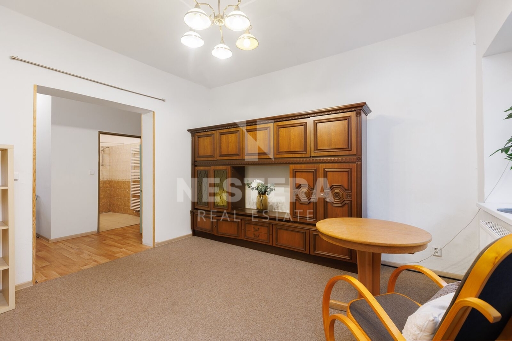 • BJ 1+kk s výměrou 31,11 m². Byt je po rekonstrukci a skládá se z kuchyně s oknem do dvora, koupelny se sprchou a toaletou a pokoje s okny do ulice.