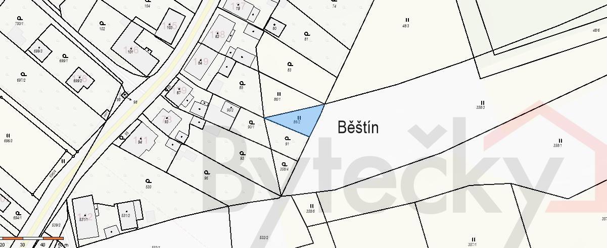 Prodej pozemku 8080 m2 v obci Běštín. Pozemek je situován v intravilánu obce a nachází se v blízkosti stavebního pásma. Část tohoto pozemku byla v roce 2011 určena k zástavbě, po další změně ÚP byla ale tato stavební část pozemku zrušena. Na části pozemku provozuje město fotbalové hřiště. Je možné koupit tento soubor pozemků jako celek event. lze od tohoto celku oddělit pozemek parc. č. 48/5, který tvoří část fotbalového hřiště - rekreační polocha 536 m2.