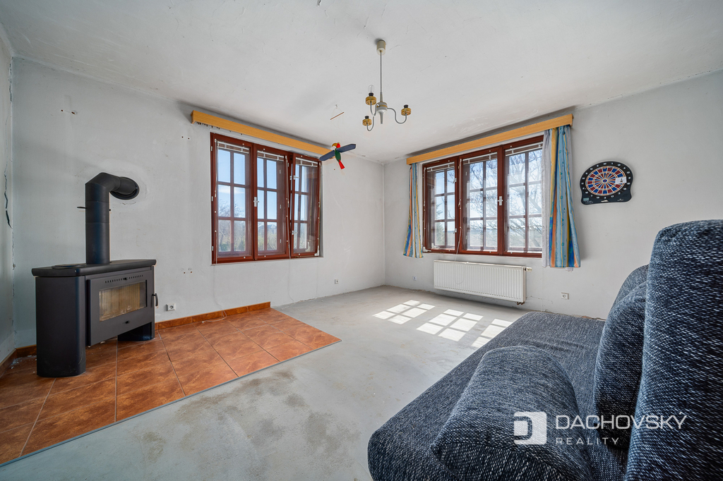 Velkou předností této nabídky je rozlehlý pozemek, který poskytuje dostatek soukromí a široké možnosti využití – zahrada, zázemí pro rodinu či další stavební potenciál.