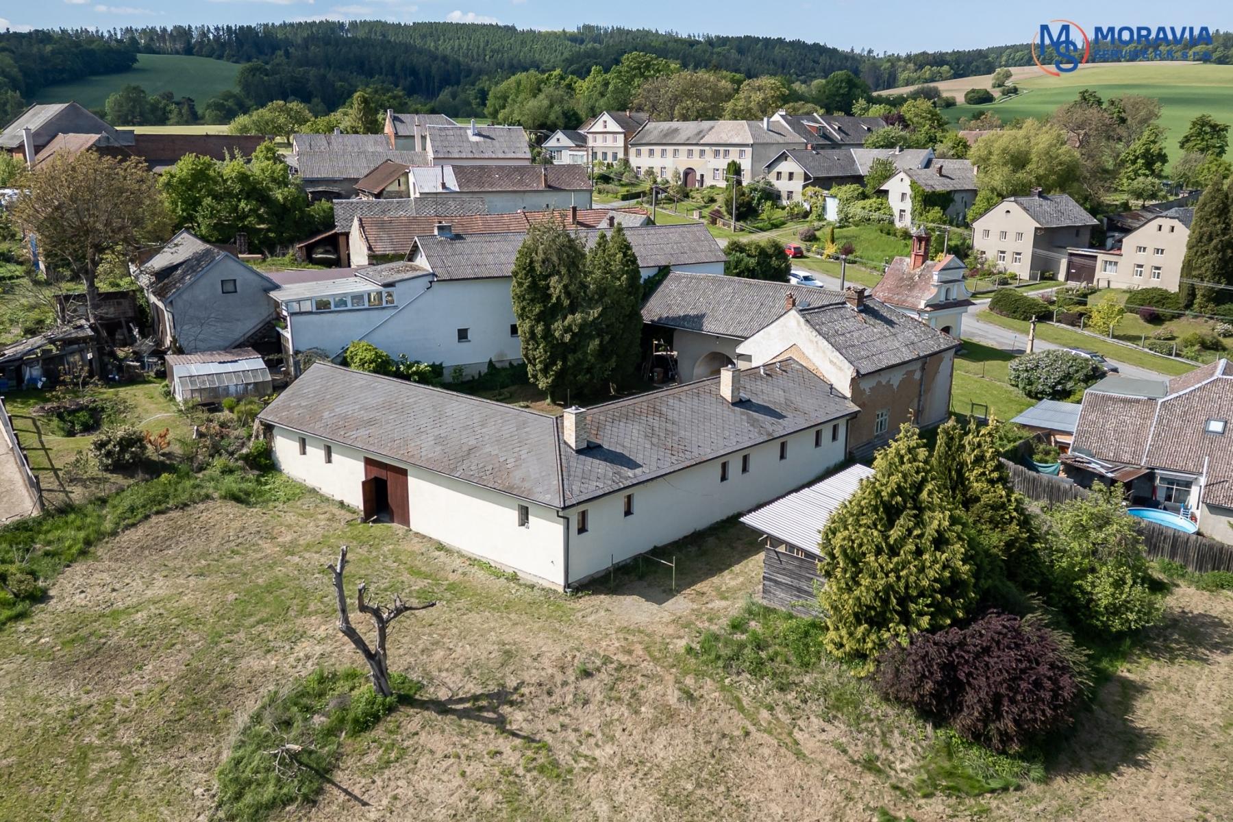 Rozsáhlé pozemky: Statek disponuje velkorysými pozemky, které poskytují dostatek prostoru pro různé aktivity, včetně možnosti ustájení koní.